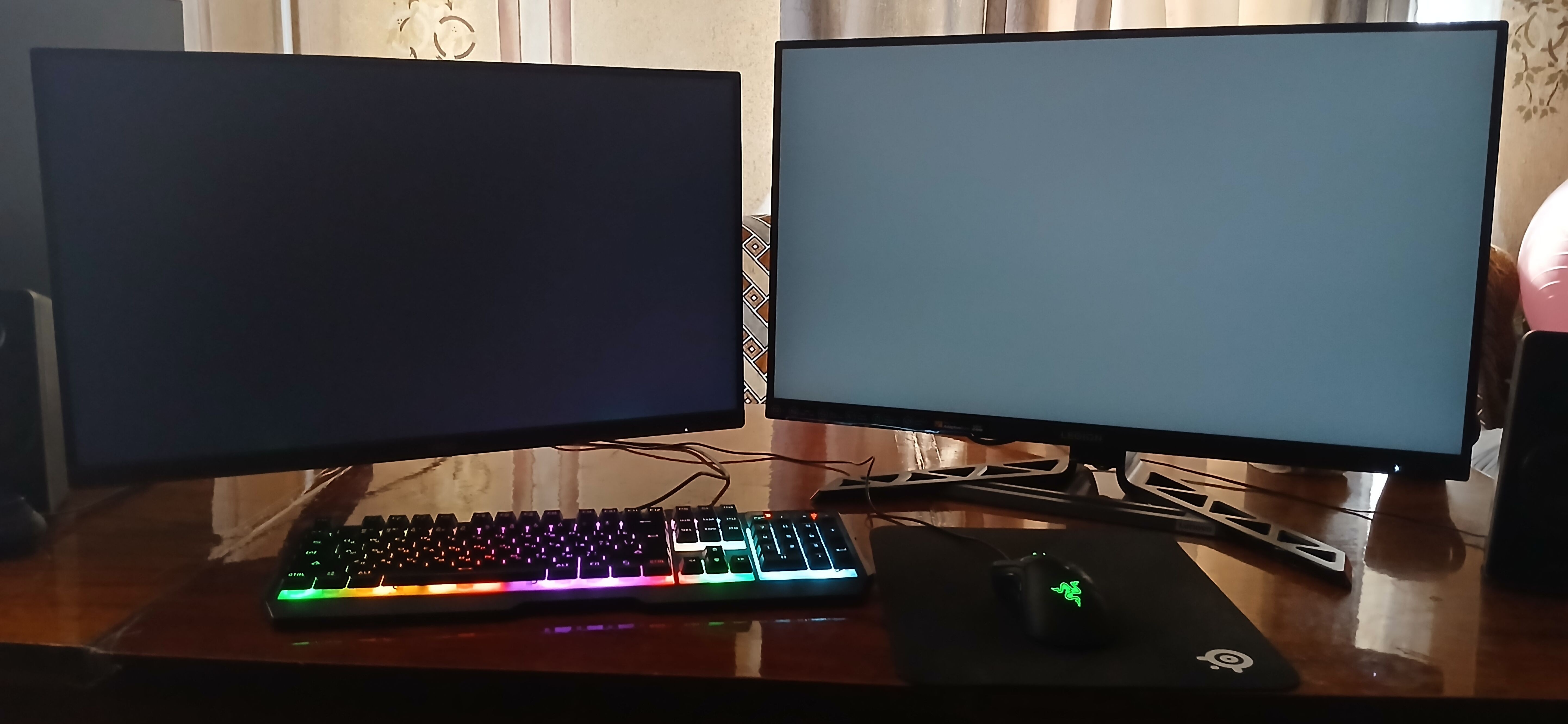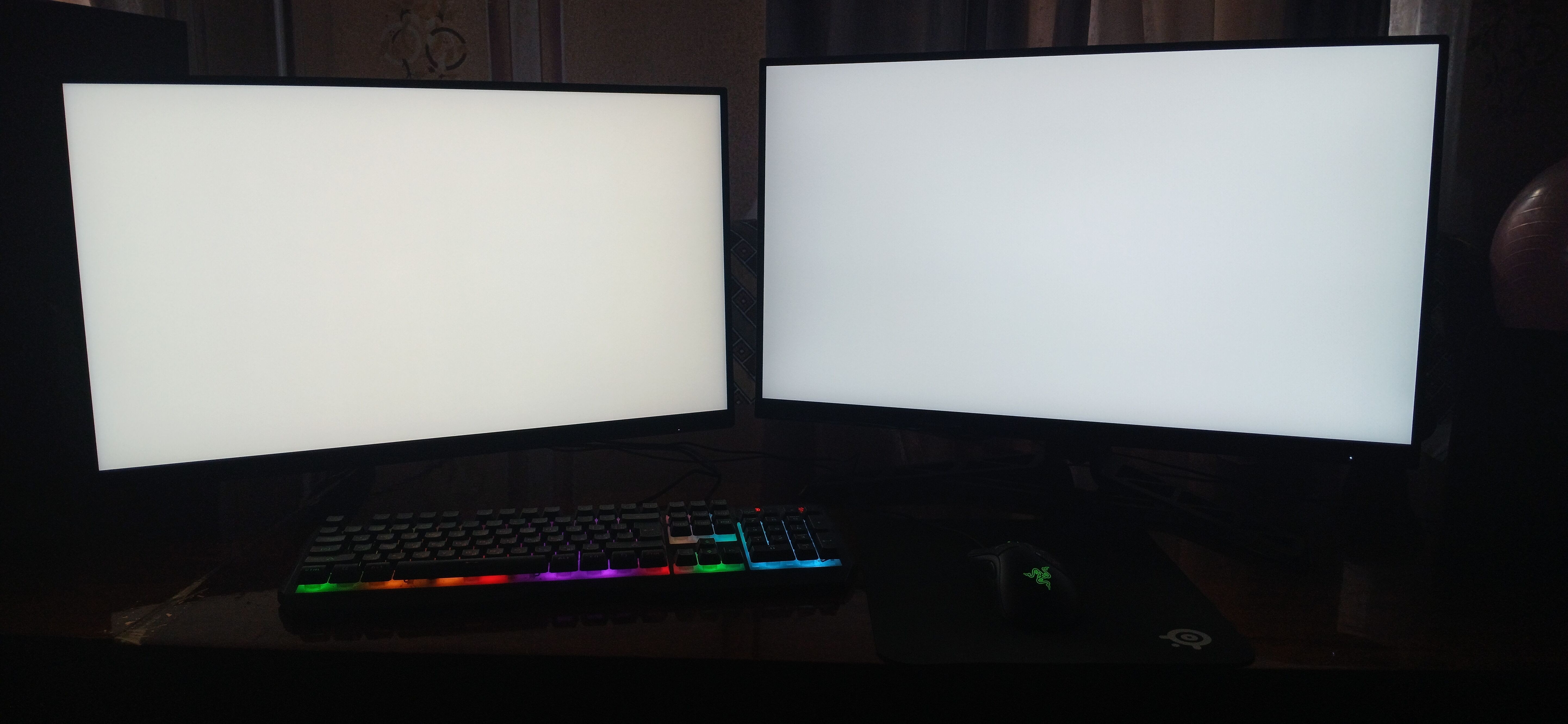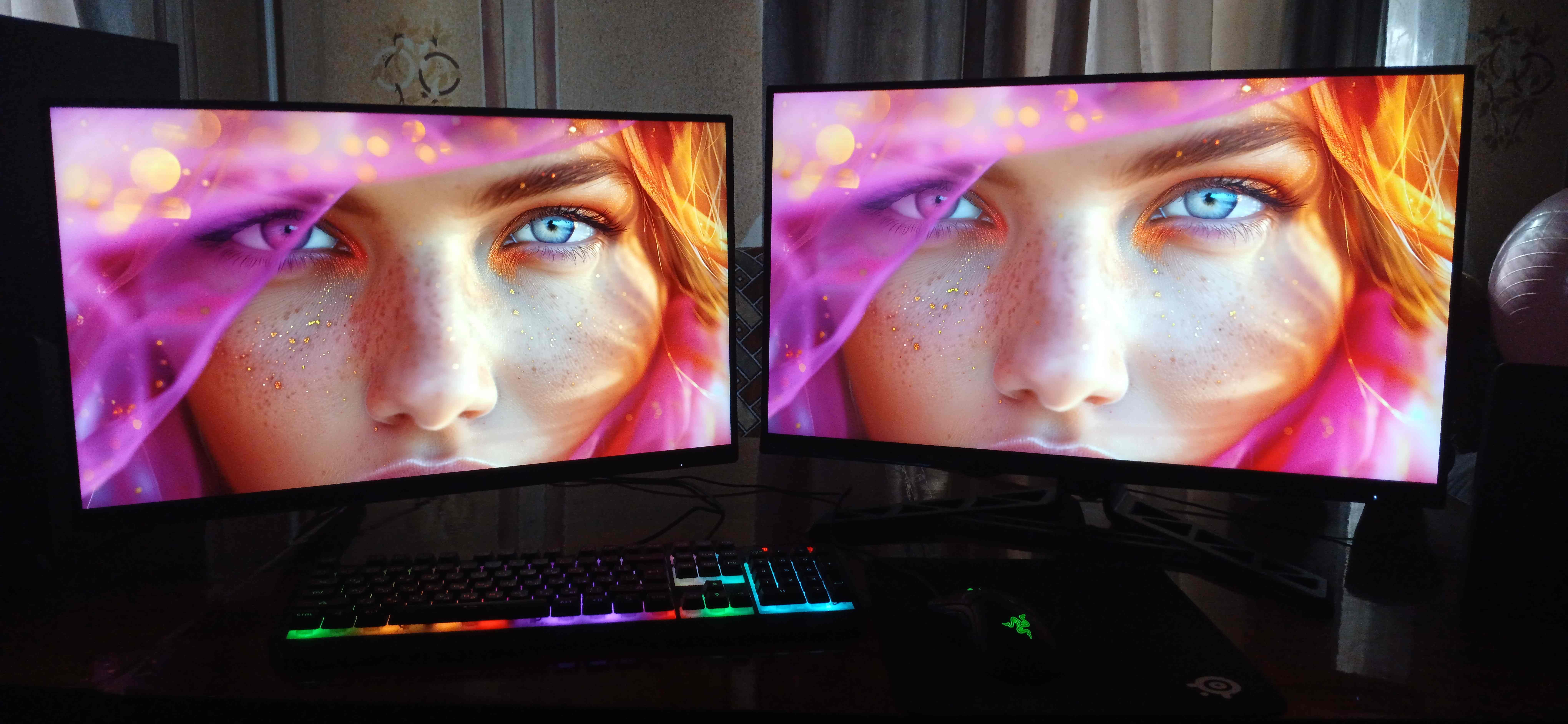 Na zdjęciu: po lewej — AOC Q27G3, po prawej — Lenovo Legion R27qe Gen 2 (IPS, bez Mini LED). Czarny nie jest już taki głęboki — ale to przecież IPS, tu zawsze tak jest.