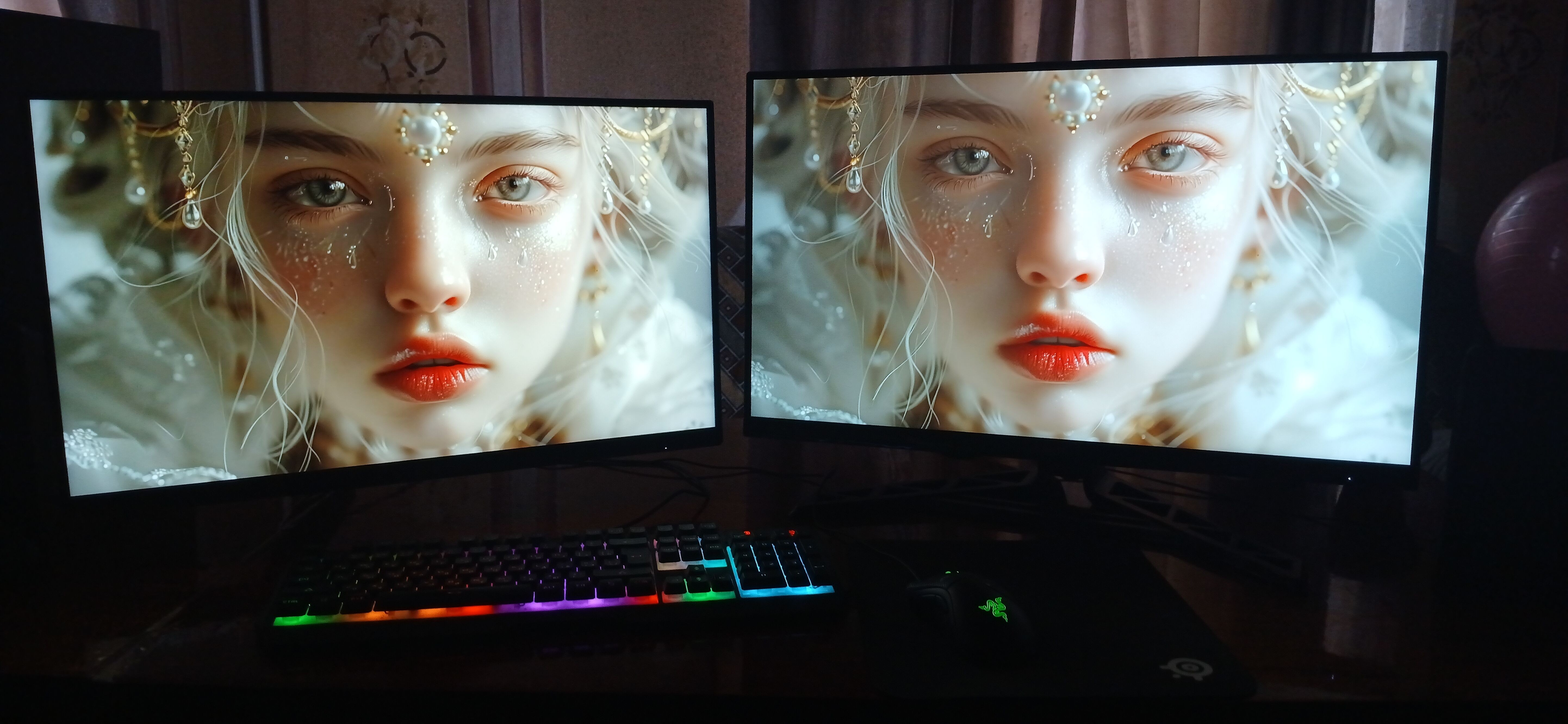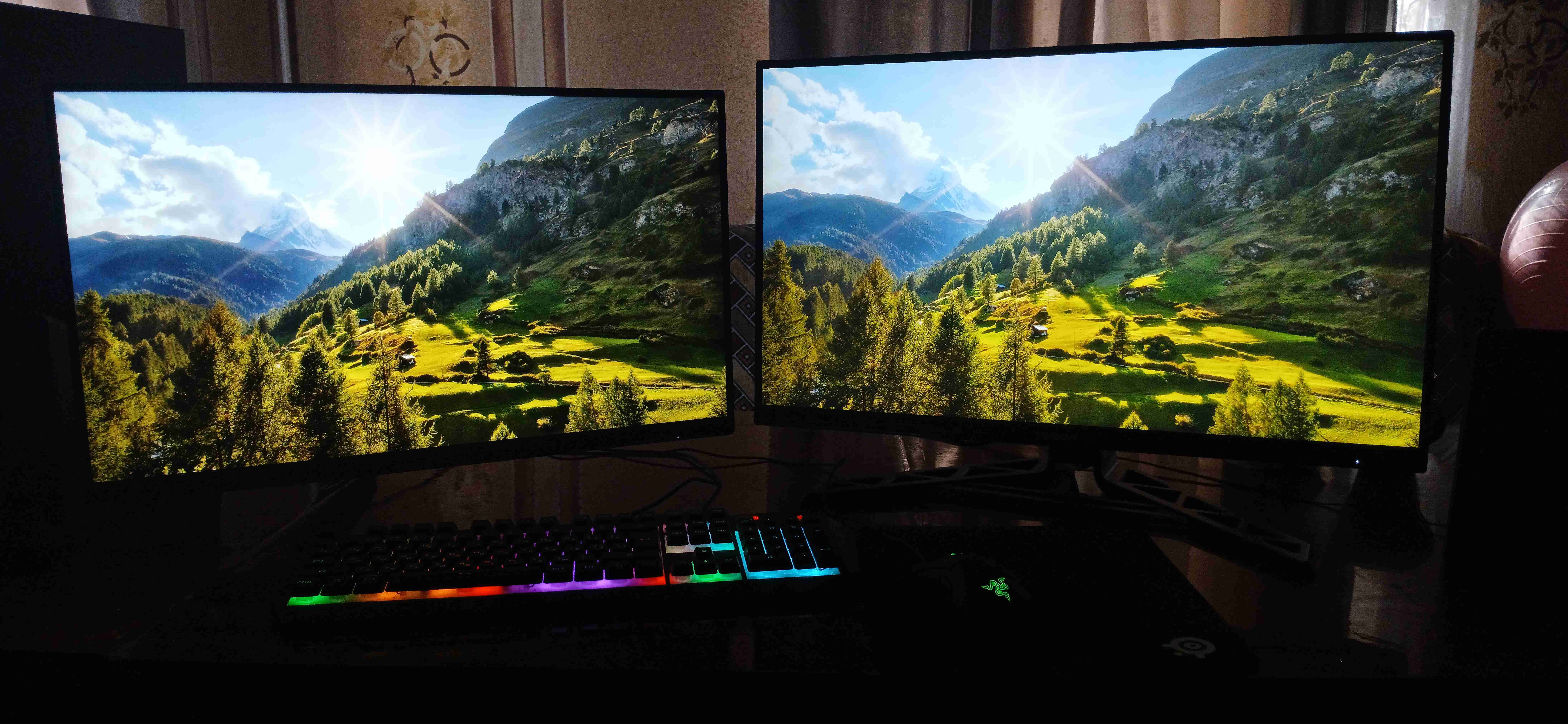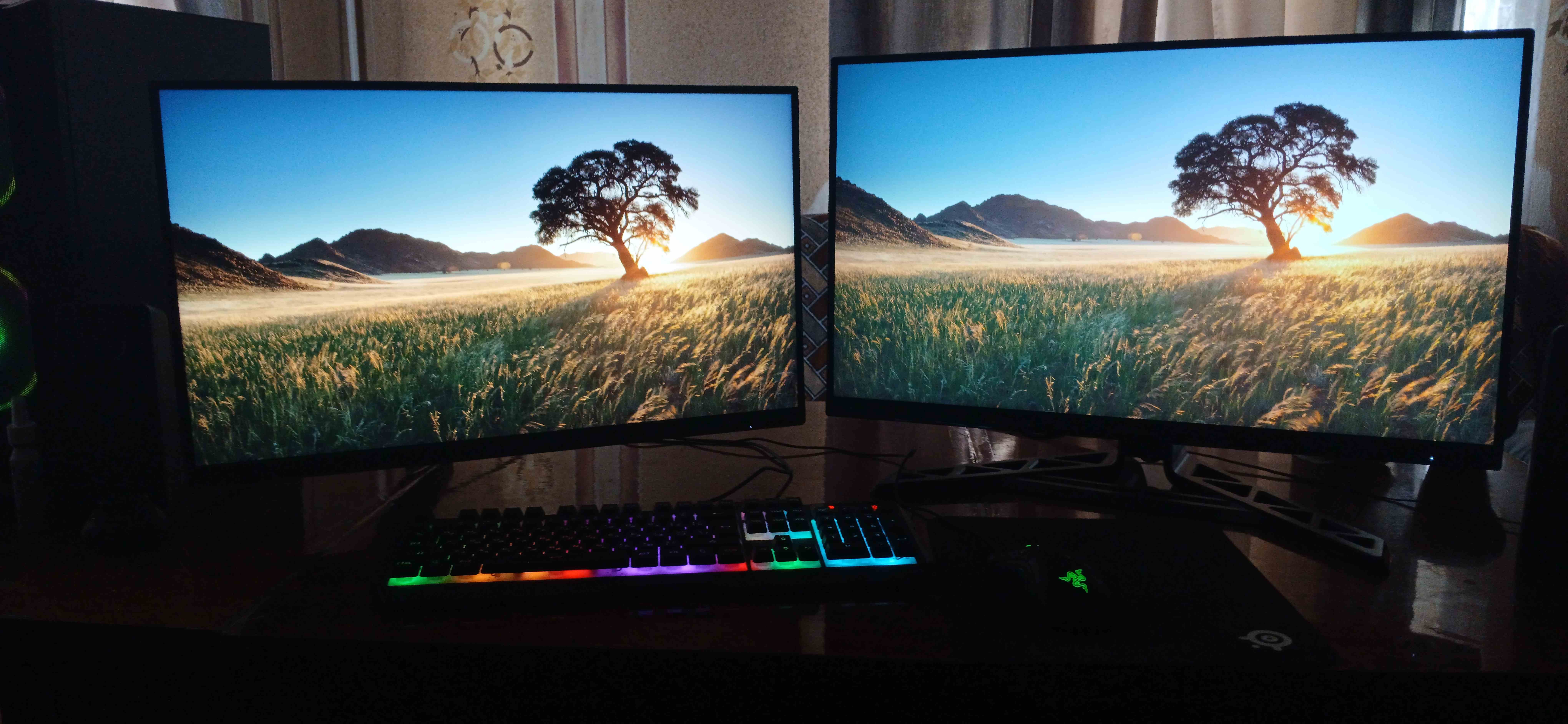 Na zdjęciu: po lewej — AOC Q27G3, po prawej — Lenovo Legion R27qe Gen 2 (IPS, bez Mini LED). Czarny nie jest już taki głęboki — ale to przecież IPS, tu zawsze tak jest.