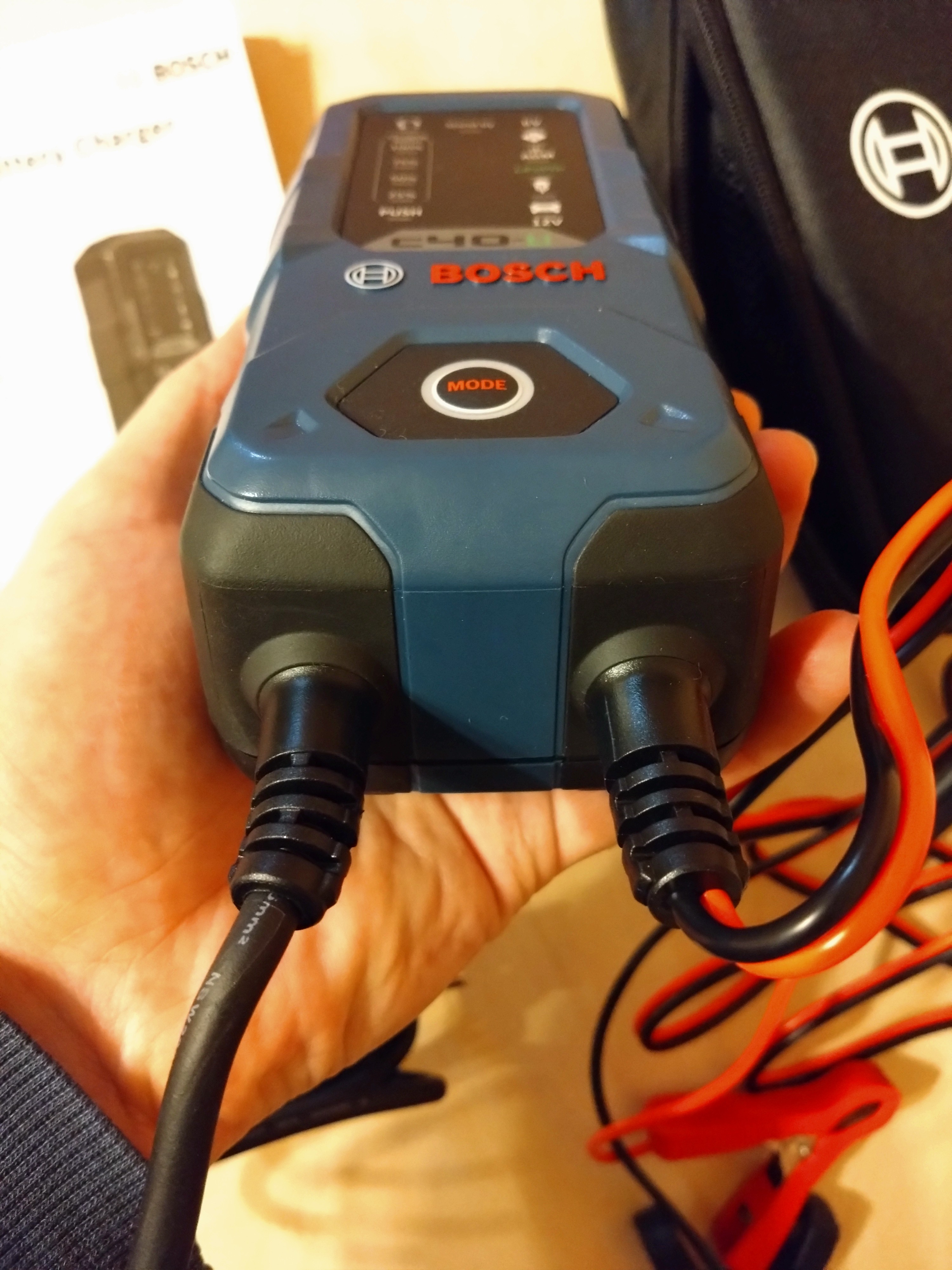 Potrzebowałem ładowarki do akumulatora samochodowego, ponieważ przez 4,5 roku ani razu go nie ładowałem (ten akumulator przyjechał razem z autem z Francji i nie mam pojęcia, ile ma lat). Zacząłem częściej robić krótkie przejażdżki, a do tego mam samochód na diesel i temperatury na zewnątrz wynosiły -20 stopni lub więcej. Zastanawiałem się między tanimi chińskimi modelami w cenie do około 280 PLN a czymś od Bosch. Tanie chińskie ładowarki kusiły ceną, ale obawiałem się, czy będą działały prawidłowo i nie "powalą" mi akumulatora. Wśród Bosch wybierałem między tym modelem a modelem C30. Zdecydowałem się na ten model, mimo że jest droższy, ze względu na możliwość ładowania akumulatorów litowych (na przyszłość). Ogólnie model mi się spodobał. Wszystko wykonane solidnie, porządnie, schludnie, przemyślane. Świetne i ładne opakowanie, wygodny i solidny pokrowiec, w którym wszystko się mieści + jest uchwyt do przenoszenia. Są wewnętrzne kieszonki i przegródki: osobna na blok ładujący, osobna na kable do akumulatora, osobna na kable do gniazdka (kable, nawiasem mówiąc, są długie). Niezła instrukcja (niektóre szczegóły nie są tam ujawnione, musiałem poszukać w internecie). Grube, elastyczne kable, solidne krokodylki. Przyjemna w dotyku obudowa ładowarki (wysokiej jakości, twardy plastik, krawędzie obudowy pokryte gumą), jasna sygnalizacja. Jest tylko jeden przycisk (prościej chyba się nie da). Ustawiłem akumulator początkowo na tryb „odnowienia (desulfatacja)” - działał w tym trybie ~1,5 godziny. Potem automatycznie przeszedł do normalnego ładowania. Naładowało akumulator dość szybko, ale nie był mocno rozładowany (było 70+ procent). Akumulator Varta bezobsługowy. Ładowarka ma zabezpieczenie przed odwrotną polaryzacją, potrafi sama rozpoznać, jakie napięcie ma akumulator (6 czy 12 V, jeśli nie wiesz, jakie jest) i wiele różnych inteligentnych funkcji. Chciałbym trochę bardziej szczegółową instrukcję dotyczącą trybów pracy i ich niuansów. Również, po prostu osobny wskaźnik, który świeciłby się, gdy akumulator jest naładowany. Ponieważ dla początkujących system zrozumienia migania/mrugania i świecenia wskaźnika może być trochę za trudny, a to oznacza różne tryby pracy ładowarki. Cena - chciałbym, aby było taniej o około 180,00 zł. |