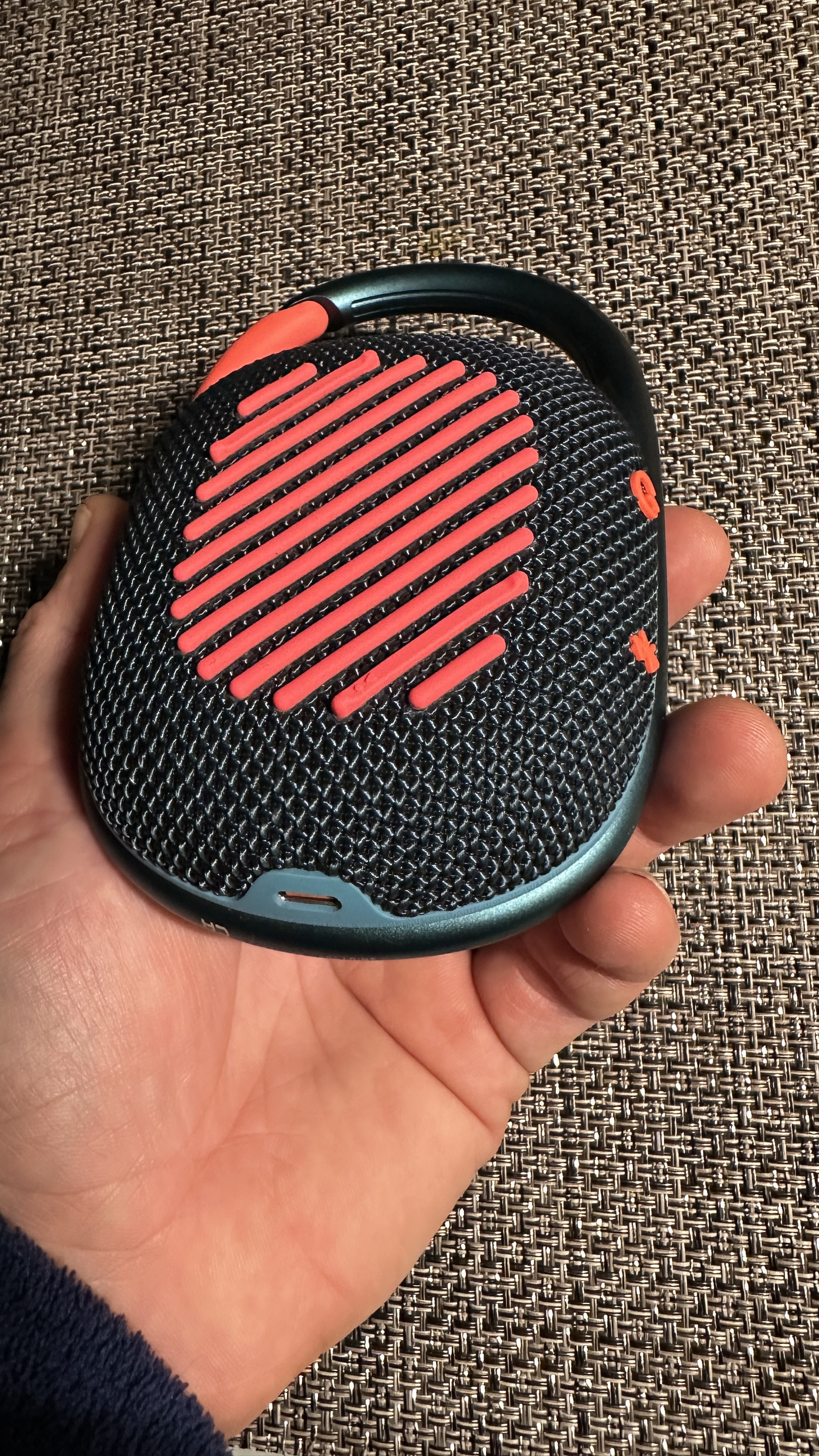 Używam JBL Clip 4 już od około 2 lat. Przez ten czas ta kolumna sprawdziła się bardzo dobrze. Jak na swoje małe rozmiary, gra głośno i czysto. Bardzo wygodne jest to, że ma karabińczyk — przypinasz do plecaka i idziesz, w ogóle nie zajmuje miejsca. Bateria trzyma dobrze, na jeden dzień użytkowania wystarcza bez problemu. Obudowa jest solidna, deszcz i upadki znosi spokojnie. Jedyne, czego bym chciał więcej, to trochę głębszego basu, ale jak na taki format to normalne. Ogólnie jestem zadowolony z tej kolumny, jako kompaktowy model — super wybór. Rozmiar i bateria Trochę brakuje basu |
