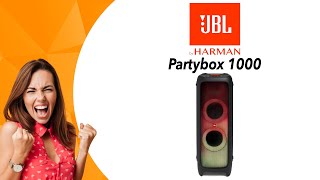 Głośnik PartyBox 1000 to najmocniejszy i największy głośnik w całej gamie JBL. Dzięki głośnemu dźwiękowi, funkcjom DJ i bogatemu wyborowi efektów świetlnych model ten jest przeznaczony na imprezy w dużych pomieszczeniach i na zewnątrz. Głośnik o wysokości 1 m waży prawie 35 kg, ale można go łatwo przenosić po domu dzięki uchwytowi i parze kółek. Producent deklaruje moc dźwięku do 1100 W, zapewnia ją 1 przetwornik HF, 2 głośniki średniotonowe po 18 cm każdy i 30 cm głośnik niskotonowy.