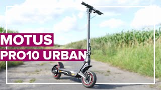 Oświetlenie LED kolumny kierownicy, platformy i przedniego koła, na platformie znajduje się również podświetlane logo Motus, które świeci podczas użytkowania i ładowania.