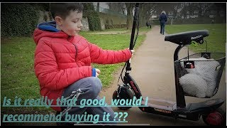 Ciekawy model wygodnej miejskiej hulajnogi elektrycznej marki Razor. Zewnętrznie produkt wygląda jak zwykły dwukołowy hulajnoga elektryczna, ale jednocześnie jest dodatkowo wyposażony w zdejmowane siedzisko dla maksymalnej łatwości poruszania się. W ten sposób konstrukcja urządzenia przypomina hulajnoga. Przede wszystkim należy zwrócić uwagę na to, że maksymalne obciążenie zalecane przez producenta to zaledwie 54 kg, co znacznie ogranicza krąg osób, które mogą korzystać z takiej hulajnogi elektrycznej.