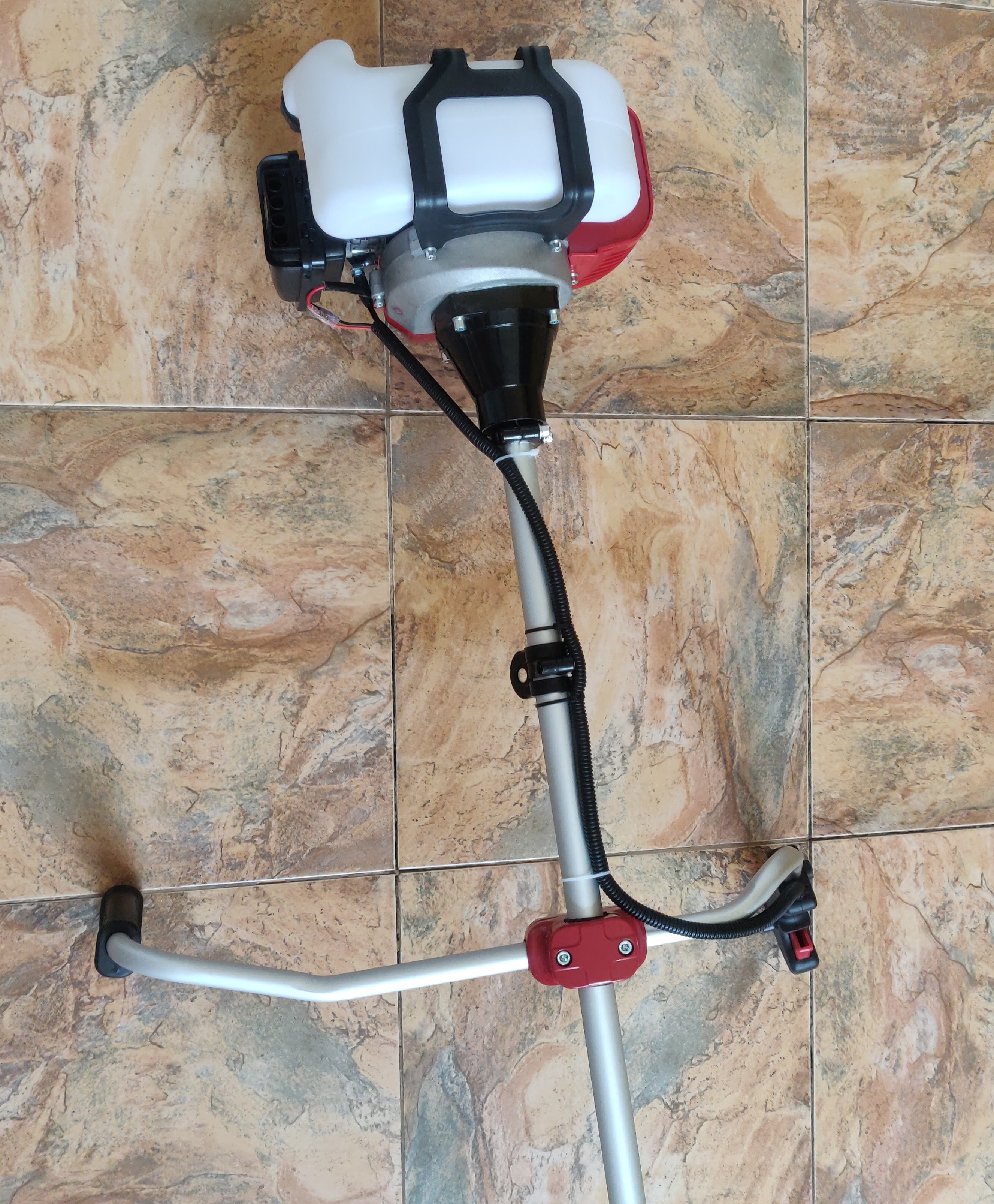 Podczas pracy narzędzie o masie 7,5 kg (bez uwzględnienia masy paliwa) nosi się na ramionach dzięki wygodnemu systemowi nośnemu z dwoma szelkami. W zestawie z kosą spalinową znajdują się różne akcesoria robocze, każde z nich przeznaczone do wykonywania określonej funkcji. W szczególności głowica tnąca (szerokość cięcia 43 cm), wypełniona wytrzymałą nylonową żyłką o średnicy 2,4 mm, jest przeznaczona do koszenia trawy z trawników i łąk. Trzypłatowy nóż stalowy (szerokość 25,5 cm) należy zamontować na kosie spalinowej, jeśli trzeba skosić wyjątkowo gęstą roślinność lub wyciąć chwasty z grubymi łodygami. A metalowa tarcza pozwala na przycinanie do korzeni gałęzi krzewów drzewiastych.