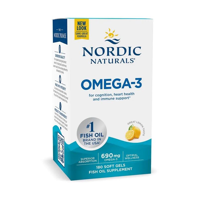 Suplement diety Omega-3 od marki Nordic Naturals zawierający oleje rybne z kwasami tłuszczowymi omega-3. Oleje rybne omega-3 EPA i DHA stanowią wsparcie oksydacyjne dla organizmu. W produkcie Omega-3 dzięki cytrynowemu smakowi niewyczuwalny jest nieprzyjemny posmak oraz zapach ryby. DLACZEGO...