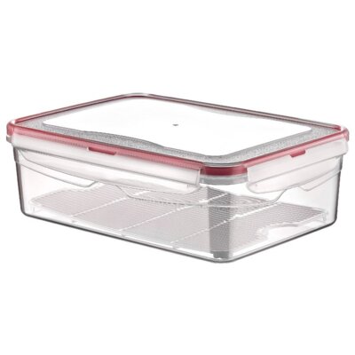 Przezroczysty plastikowy pojemnik z silikonową uszczelką w pokrywie. Szczelna pokrywa zamykana na klipsy. Nadaje się do lodówki, mikrofalówki i zmywarki.