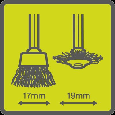 Szczotki druciane ze stali nierdzewnej 17 i 19 mm do usuwania rdzy z powierzchni metalowych. Uniwersalna i kompatybilna z narzędziami obrotowymi RYOBI® i innymi narzędziami obrotowymi z tuleją zacisko więcej→wą 3,2 mm (1/8”). Idealna do pracy we wszystkich rodzajach metali, plastiku, drewnie, srebrze i miedzi. Średnica trzpienia: 3,2 mm / 1/8”. Maksymalne obroty 15 000.