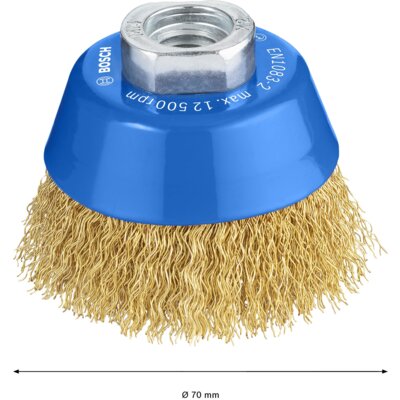 Szczotka druciana marki Bosch przeznaczona do długotrwałego czyszczenia stali. Wykonana z miedziowanego drutu falistego, idealnie sprawdza się przy lżejszych pracach oczyszczających. Pasuje do wszystk więcej→ich szlifierek kątowych z gwintem M14.