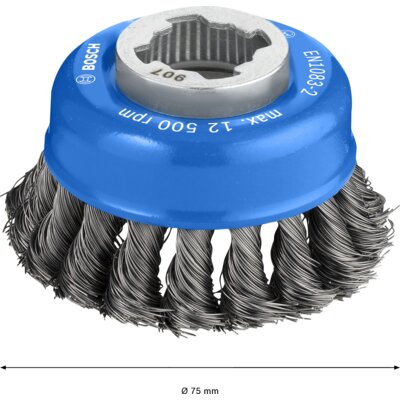 Szczotka druciana BOSCH 2608620726 – garnkowa szczotka X-LOCK Heavy for Metal z plecionym drutem, zapewniająca wyjątkowo agresywne czyszczenie. Przeznaczona do ciężkich prac na średnich i dużych powie więcej→rzchniach stalowych, doskonale sprawdza się przy usuwaniu silnej rdzy, farb, lakierów oraz ochrony podwozia.