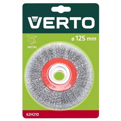 Szczotka druciana marki VERTO o średnicy 125 mm, to solidne narzędzie wykonane z drutu stalowego o grubości 0.33 mm. Posiada wzmocnioną konstrukcję korpusu, co pozwala na wydajne czyszczenie konstrukc więcej→ji stalowych. Produkt przystosowany jest do mocowania na szlifierkach kątowych dzięki rozmiarowi gwintu M14. Szczotka wykonana jest z drutu karbowanego, co zapewnia skuteczność w usuwaniu rdzy, farby i innych zanieczyszczeń.