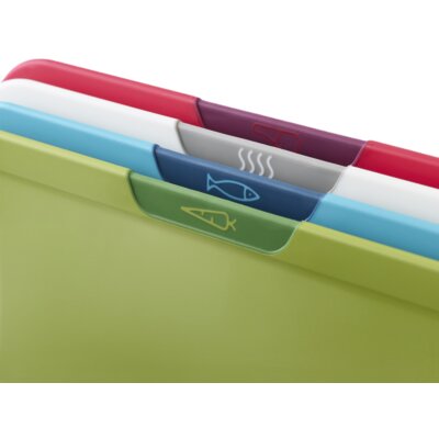 Komplet dwóch desek do krojenia żywności, które mogą również służyć jako blat kuchenny, zakrywając kuchenkę i tworząc większą powierzchnię roboczą.