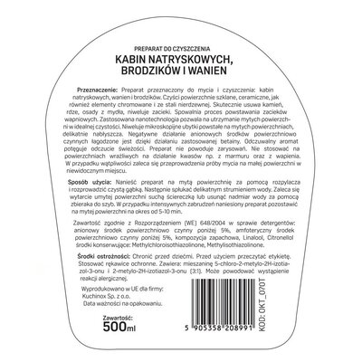 Gwarancją skutecznego usuwania uporczywych zabrudzeń, takich jak osad wapienny i ślady mydła, jest nasz preparat do czyszczenia kabin natryskowych, brodzików i wanien. Jest idealny do mycia i czyszcze więcej→nia różnorodnych powierzchni, włączając w to kabiny natryskowe, wanny i brodziki. Niezależnie od materiału - szkła, ceramiki, czy elementów chromowanych i ze stali nierdzewnej - nasz produkt gwarantuje skuteczne usunięcie kamienia, rdzy i osadów z mydła. Co więcej, opóźnia proces tworzenia się zacieków wapniowych, utrzymując myte powierzchnie w idealnej czystości.