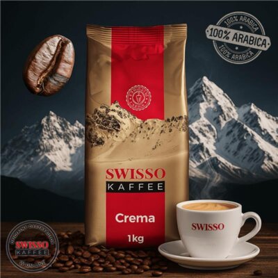 Swisso Kaffee Crema kawa ziarnista 1 kg 100% Arabica o średnim stopniu palenia. Zbalansowany smak z nutami orzechów i cytrusów oraz delikatną kremową cremą. Kawa świeżo palona, bez dodatków i konserwa więcej→ntów, o średniej intensywności (3/5). Idealna do ekspresów automatycznych, kolbowych, kawiarek, French Press i metod przelewowych. Sprawdzi się do espresso, latte, cappuccino i flat white. Mieszanka ziaren Arabiki z Afryki, Ameryki Południowej i Azji. Doskonała do codziennego użytku w domu i biurze.