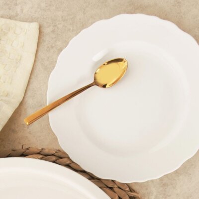 Talerz deserowy wykonany z porcelany w białym kolorze. Posiada falowany rant. Sprawdzi się do serwowania ciast, deserów i przekąsek. Nadaje się do zmywarki i mikrofalówki.