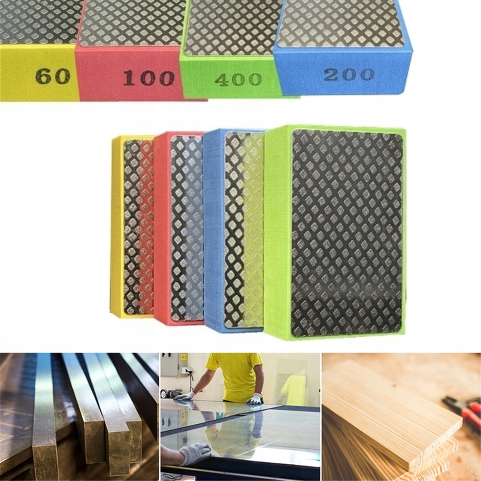 4 Szt Diamentowa Kostka Do Szlifowania Gresu Płytek 60# 100# 200# 400#