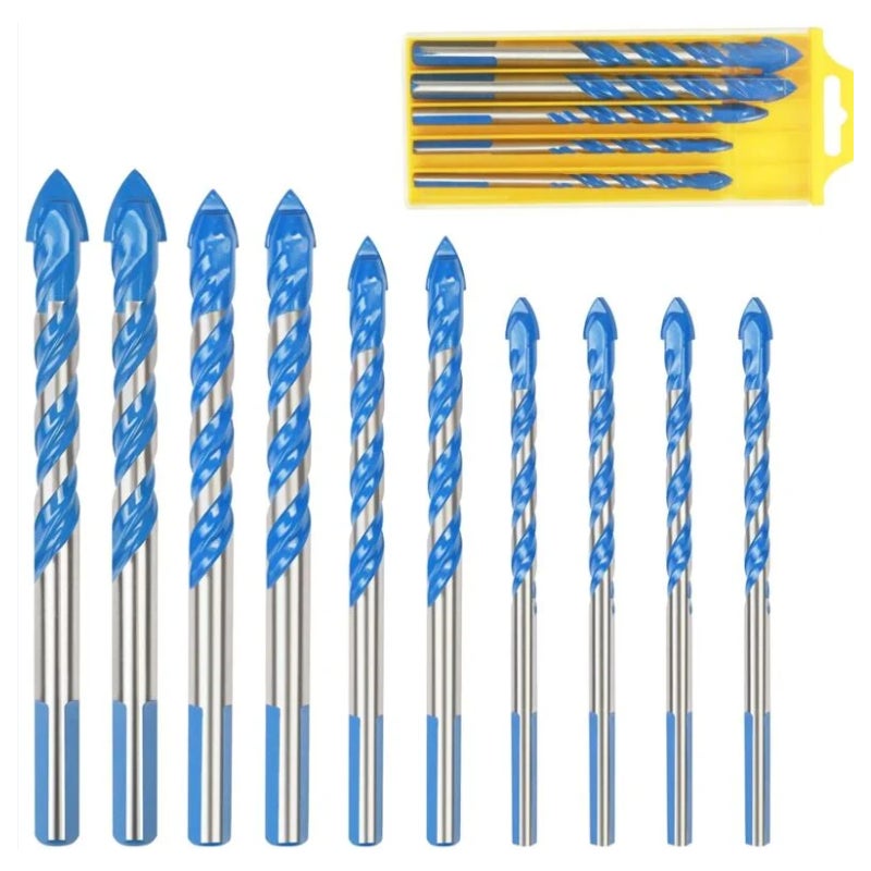 Zestaw wierteł trójkątnych - Zawiera 10 wierteł i dwa małe pudełka ułatwiające transport i organizację. Zawiera 4 różne rozmiary (4 x 6 mm, 2 x 8 mm, 2 x 10 mm, 2 x 12 mm).
