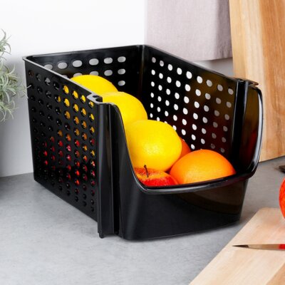 Pojemnik na owoce i warzywa. Wykonany z tworzywa w czarnym kolorze. Znajdzie zastosowanie w każdej kuchni. Większa ilość koszyków pozwoli na wygodne piętrowanie ich.