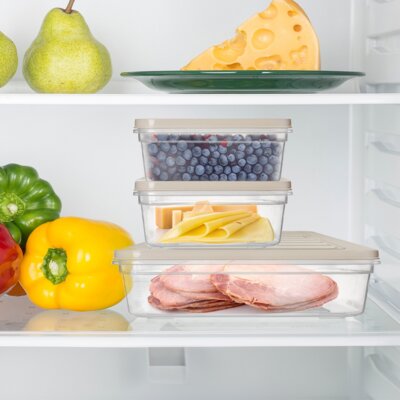 Przezroczysty pojemnik z pokrywką świetnie nadaje się do organizacji żywności w lodówce i zamrażarce. Idealny do przechowywania np. serów i wędlin.