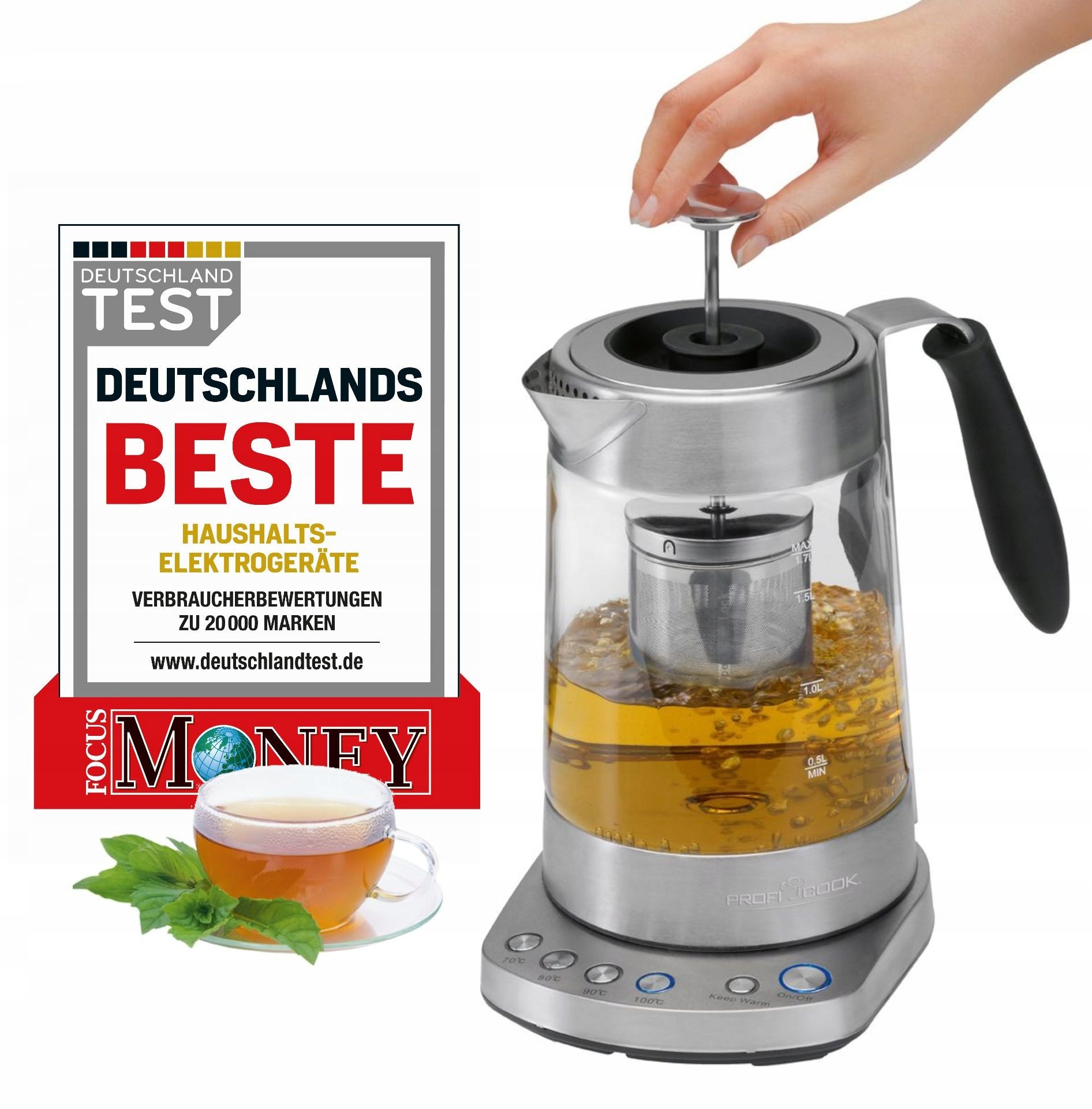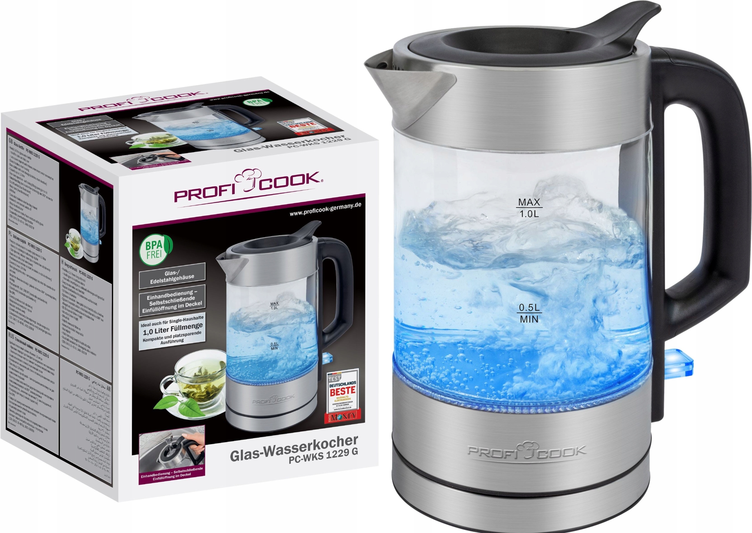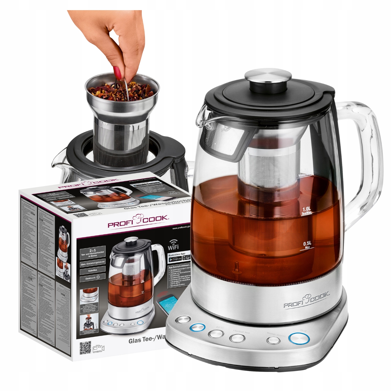 ProfiCook czajnik elektryczny z regulacją temperatury 40-100C 17 l funkcja szybkiego startu 2200 W szklany pojemnik z izolac 187 złAmazon.plZłóż skargęKup!