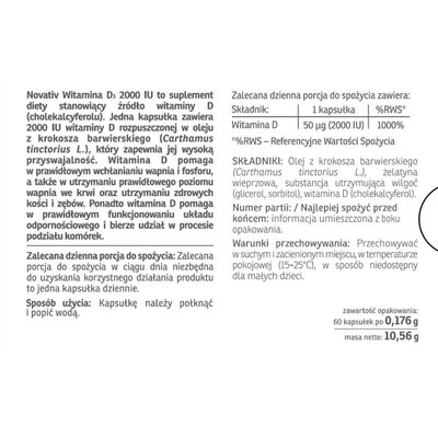 Forte Witamina D3 NOVATIV 4000 IU (60 kapsułek)Novativ Witamina D3 4000 IU forte to suplement diety zawierający w jednej kapsułce 4000 j.m. witaminy D rozpuszczonej w oleju z krokosza barwierskiego (Carthamus tinctorius L.), który zapewnia jej wysoką przyswajalność.Cena od 16 złPorównaj ceny i kup Forte Witamina D3 NOVATIV 4000 IU (60 kapsułek)Mediaexpert.pl →16 złELECTRO.pl (Polska) →16 złApteka Olmed (Polska) →16 złEmpik.com (Polska) →18 złPorównaj ceny4→