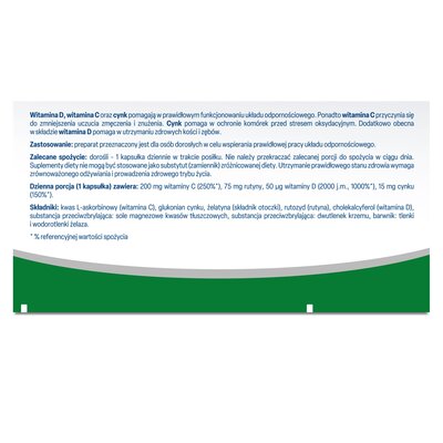 Kompleks witamin OLEOFARM D-Rutin CC (60 kapsułek)Witamina D, witamina C oraz cynk pomagają w prawidłowym funkcjonowaniu układu odpornościowego. Ponadto witamina C przyczynia się do zmniejszenia uczucia zmęczenia i znużenia. Cynk i rutyna pomagają w ochronie komórek przed stresem oksydacyjnym. Dodatkowo obecna w składzie witamina D pomaga w utrzymaniu zdrowych kości i zębów.Cena od 14 złPorównaj ceny i kup Kompleks witamin OLEOFARM D-Rutin CC (60 kapsułek)gemini.pl (Polska) →14 złMediaexpert.pl →15 złELECTRO.pl (Polska) →15 złe-ZikoApteka.pl (Polska) →16 złEmpik.com (Polska) →16 złPorównaj ceny7→
