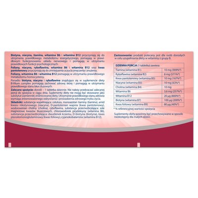 Kompleks witamin OLEOFARM B-Vitum Complex B-Vitum Complex (60 tabletek)Witamina B6, B12, B1, B3 oraz biotyna przyczyniają się do utrzymania prawidłowego metabolizmu energetycznego, pomagają w prawidłowym funkcjonowaniu układu nerwowego i pomagają w utrzymaniu prawidłowych funkcji psychologicznych. Foliany, witamina B3, B2, B6 i B12 oraz kwas pantotenowy przyczyniają się do zmniejszenia uczucia zmęczenia i znużenia. Foliany, witamina B6 i witamina B12 pomagają w utrzymaniu prawidłowego metabolizmu homocysteiny. Ponadto Biotyna oraz witamina B2 i B3 pomagają zachować zdrową skórę i pomagają w utrzymaniu prawidłowego stanu błon śluzowych. 12 złMediaexpert.plZłóż skargęKup!