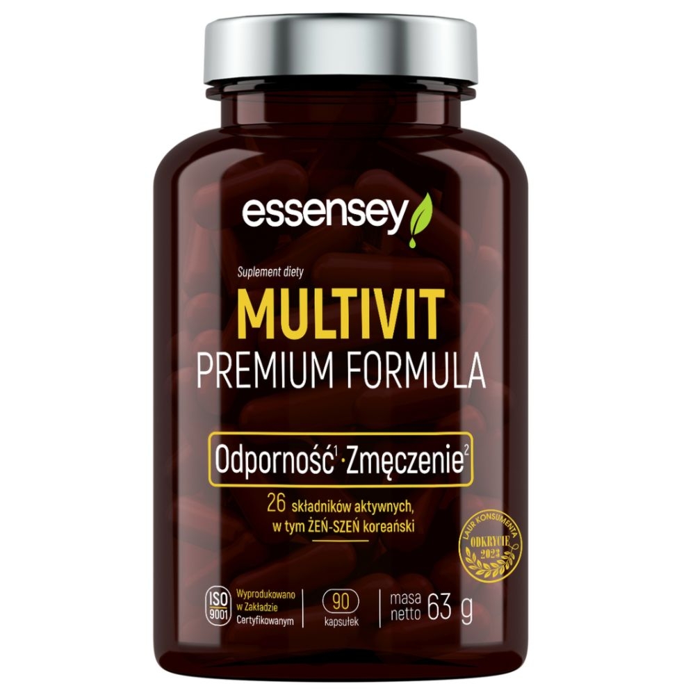 Essensey Multivit Premium Formula 90 kapsułekEssensey Multivit Premium Formula suplement diety – Kompleksowe Wsparcie OrganizmuZaawansowany suplement diety, którego skład opiera się na starannie dobranej kompozycji witamin, minerałów oraz ekstraktów roślinnych, wzbogaconej o cenne dodatki, takie jak koenzym Q10 i CLA. Formuła została opracowana w celu kompleksowego wsparcia prawidłowego funkcjonowania organizmu na wielu płaszczyznach, wyróżniając się wysoką przyswajalnością zawartych w niej składników.Produkt stanowi bogate źródło silnych antyoksydantów, w tym koenzymu Q10, które pomagają w ochronie komórek przed stresem oksydacyjnym i negatywnym działaniem wolnych rodników. Skład został uzupełniony o ekstrakt z korzenia żeń-szenia kor… 25 złDrogerienatura.plZłóż skargęKup!