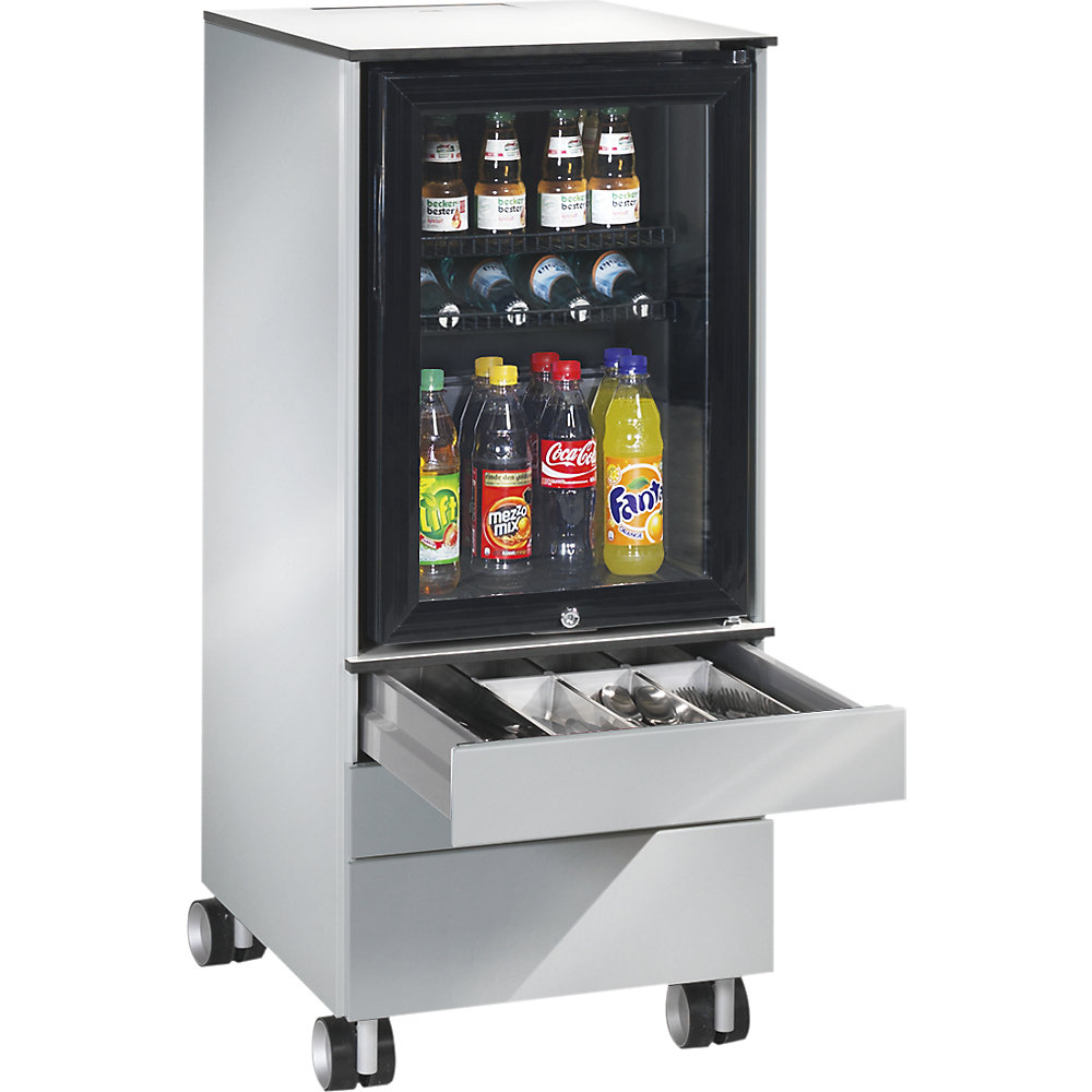 C+P Lodówka Caddy ASISTO16 470Kup!złKaiserkraft.plZłóż skargęLodówka Caddy ASISTO, na rolkach, RAL 9016 biały drogowy. Dostawa = zmontowane/w całości. Wysokość = 1157 mm. Szerokość = 430 mm. Głębokość = 600 mm. Materiał korpusu = stal, lakierowana. Kolor korpus więcej→u = biały drogowy, RAL 9016. Wyposażenie = lodówka (3 przegrody), szuflady z miejscem na sztućce, wkładem na drobne części i miejscem na filiżanki i szklanki. Liczba szuflad = 3 szt. Oświetlenie = z oświetleniem. Całkowita moc przyłączeniowa = 85 W. Poj. lodówki = 62 l. Klasa wydajności energetycznej = D (spektrum A do G). Rodzaj produktu = wyposażenie dodatkowe do cateringu. Emisja hałasu 56 dB, roczne zużycie energii ok. 347 kWh, klasa energetyczna D. Nośność szuflad 40 kg. Na rolkach. Lodówka…