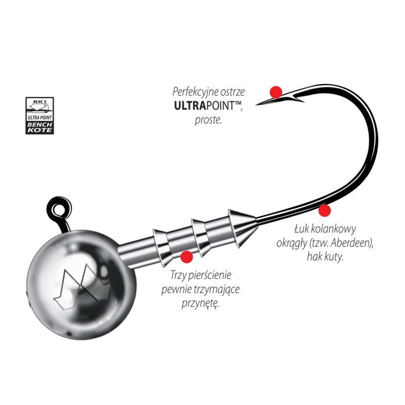 Mustad GŁÓWKA JIGOWA BIG GAME NR.10/0 10G 3SZT 790-100-10018Kup!złBigRiver.plZłóż skargęSeria Big Game skonstruowana została w oparciu o specjalnie dla niej zaprojektowane, ekstremalnie mocne haki typu 3X STRONG, wykonane z drutu HeavyDUTY TM, ostrzone w technologii ULTRAPOINT TM i pokry więcej→wane policeramiczną powłoką BK1 BenchKote. Każdy hak dla dodatkowego zwiększenia wytrzymałości został silnie spłaszczony bocznie na całym odcinku łuku kolankowego (tzw. forged hook – hak kuty). System talerzowego mocowania przynęty został przygotowany specjalnie dla serii Big Game i wzmocniony tak, aby w czasie rzutu niezawodnie blokował na haku nawet największych rozmiarów przynęty gumowe. Główki jigowe serii Big Game przeznaczone są do połowu największych ryb drapieżnych: sumów, szczupaków i sandac…