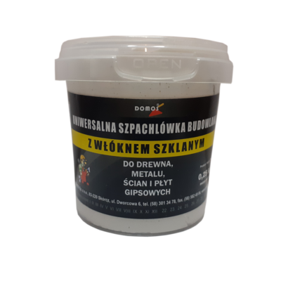 Masa szpachlowa uniwersalna elastyczna 160 g Wysokiej jakości gotowa do użycia masa szpachlowa przeznaczona do użytku wewnątrz i na zewnątrz pomieszczeń, daje gładkie i wytrzymałe powierzchnie. Jest ł więcej→atwa w nakładaniu i szlifowaniu, zapewnia oddychanie ścian. Przeznaczona do prac remontowych, wykończeniowych i dekoracyjnych w budownictwie. Służy do wypełniania nierówności, rys, ubytków, bruzd, odkutych tynków, spękań, szczelin i braków w podłożu. Zalecana do wygładzania nierówności w powierzchniach betonowych, cementowowapiennych, gipsowo-wapiennych i innych typowych podłoży stosowanych w budownictwie. Doskonała jako podkład pod farby akrylowe, silikonowe, ftalowe.