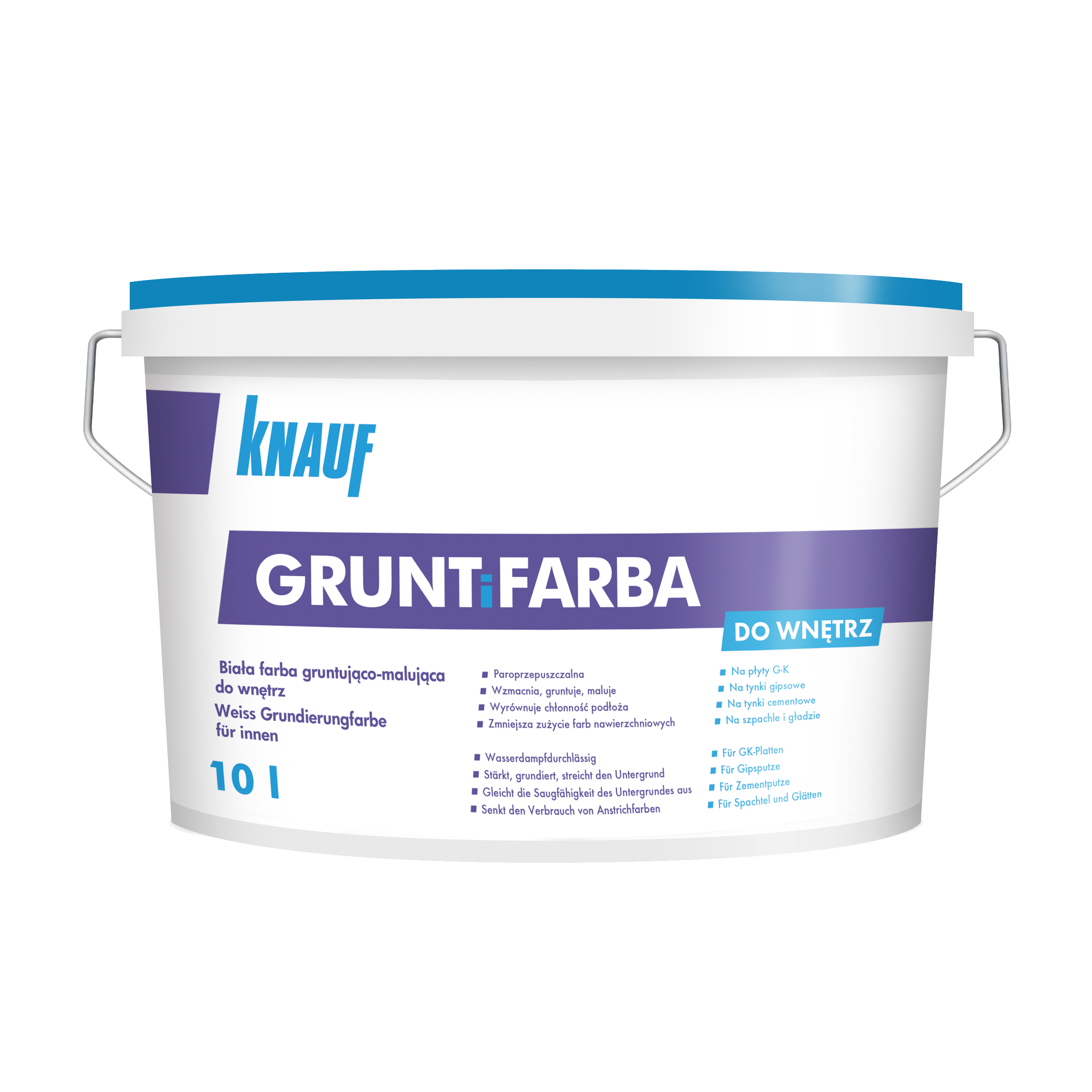Knauf Farba i farba Biały 10 l115Kup!złLeroy MerlinDostawa: w Polsce Złóż skargęKnauf Grunt i Farba to produkt gruntująco-malujący w jednym. Idealnie nadaje się do przygotowania powierzchni ścian i sufitów przed ostatecznym położeniem koloru. Knauf Grunt i Farba jednocześnie grun więcej→tuje podłoże oraz nadaje mu biały kolor, który stanowić będzie doskonałą bazą pod farby nawierzchniowe.. Knauf Gruntifarba przeznaczona jest do gruntowania i malowania powierzchni ścian i sufitów wewnątrz pomieszczeń wykonanych z płyt gipsowo-kartonowych, tynków gipsowych, tynków cementowych, cementowo-wapiennych, szpachli, gładzi, itp. Knauf GRUNTiFARBA niweluje różnice w chłonności podłoża, wzmacnia jego powierzchnię, zmniejsza zużycie farb nawierzchniowych, poprawia ich przyczepność do podłoża. Po w…