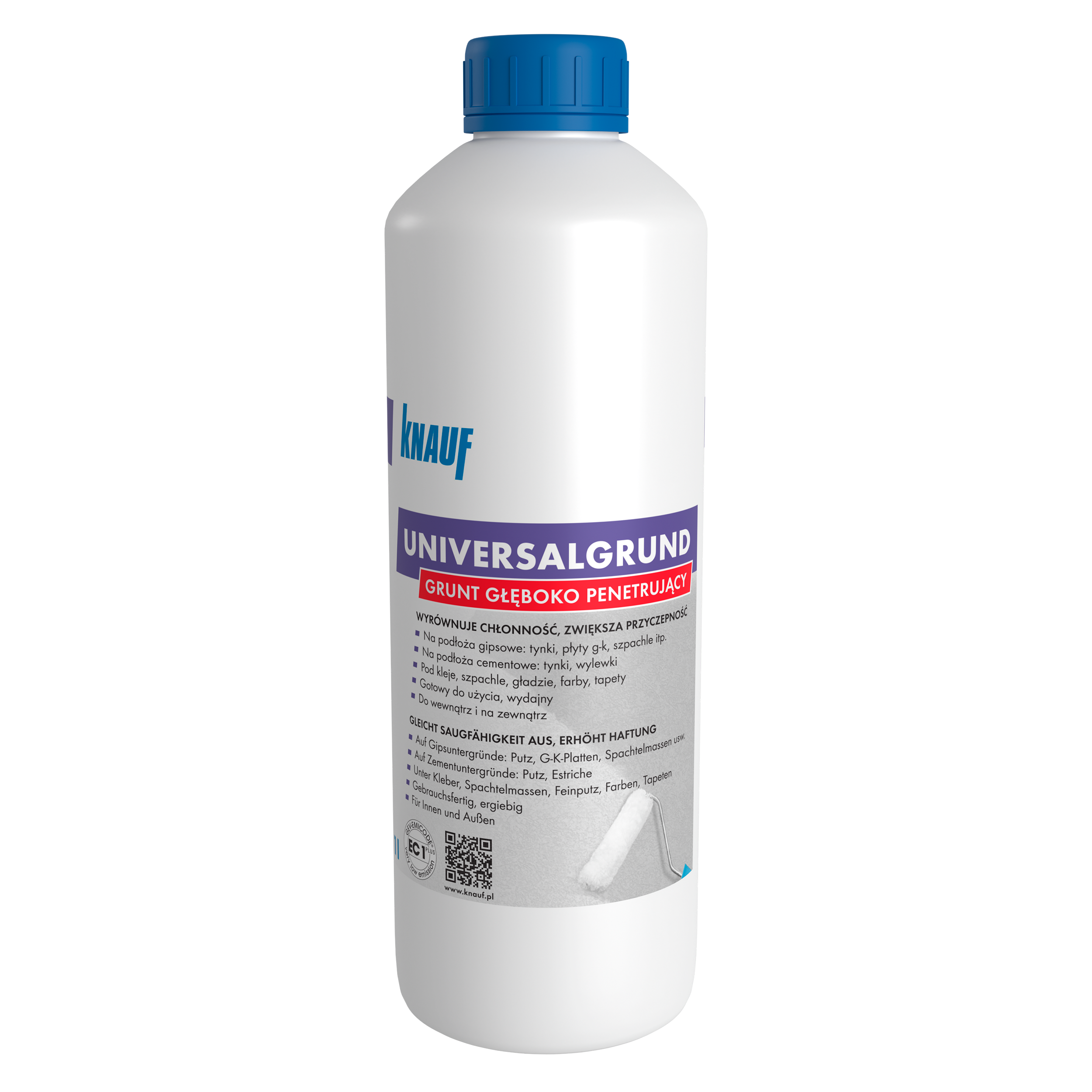 Knauf Środek gruntujący Universalgrund 1 litr19Kup!złLeroy MerlinDostawa: w Polsce Złóż skargęGotowy do użycia bezrozpuszczalnikowy, paroprzepuszczalny, bezbarwny środek głęboko penetrujący na bazie dyspersji żywic syntetycznych. Wzmacnia powierzchnie podłoży pylących, chłonnych wewnątrz oraz więcej→na zewnątrz budynków. Stosowany przed układaniem płytek ceramicznych, tynkowaniem, tapetowaniem, szpachlowaniem, malowaniem, pod posadzki i podkłady podłogowe.. Gotowy do użycia. Wzmacnia powierzchnię. Zmniejsza i wyrównuje chłonność