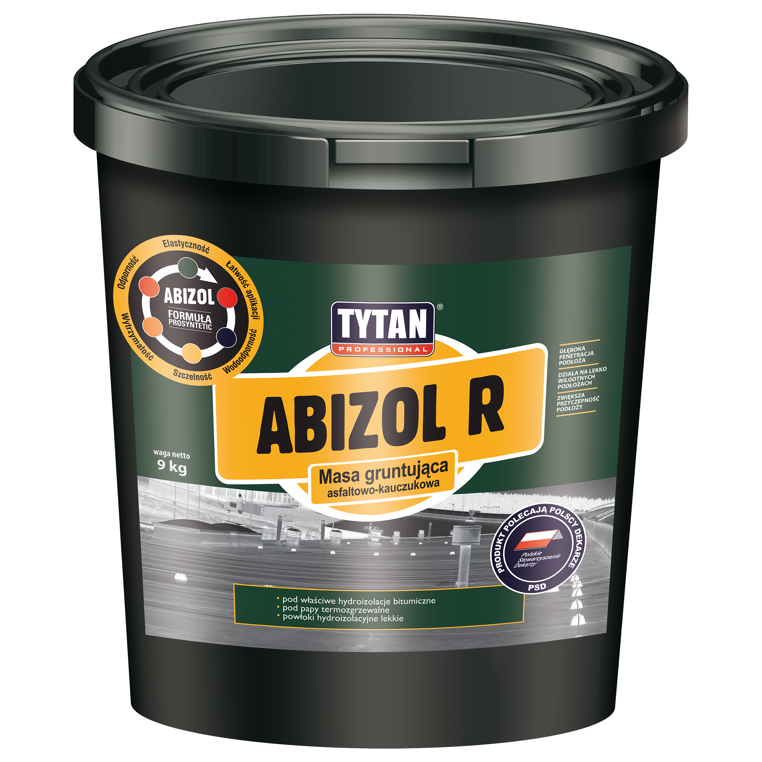 TYTAN Masa gruntująca ABIZOL R 9 kg Professional Czarny129Kup!złLeroy MerlinDostawa: w Polsce Złóż skargęTYTAN PROFESSIONAL Abizol R Roztwór gruntujący bitumiczny to produkt budowlany modyfikowany kauczukiem syntetycznym. Nadaje się w wielu pracach z zakresu budownictwa, które wymagają tworzenia powłok h więcej→ydroizolacyjnych, lub gruntowania podłoży betonowych. Abizol R od polskiej marki Tytan jest niezwykle wydajny i pozwala zwiększyć przyczepność podłoży. Charakteryzuje się także odpornością na słabe kwasy i zasady oraz możliwością stosowania na lekko wilgotnych powierzchniach. Produkt nie powinien mieć kontaktu ze styropianem, smołą i papą smołową. Czarny roztwór bitumiczny Tytan przeznaczony jest do wykonywania samodzielnych powłok hydroizolacyjnych typu lekkiego. Ponadto idealnie sprawdza się jako pod…