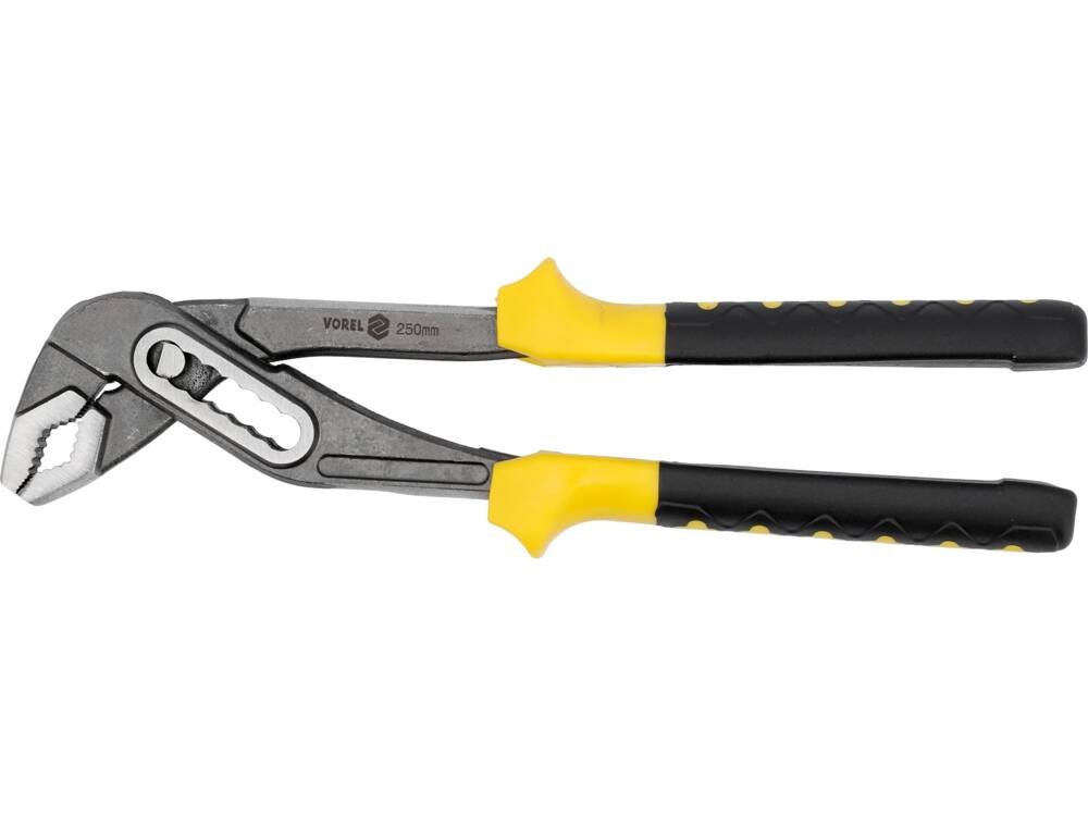 Vorel Szczypce hydrauliczne nastawne 250 mm 0.46kg 40057od 17 złPorównaj ceny1→Popularne szczypce nastawne z przegubem przesuwnym. Powierzchnia szczęk rowkowana rozwartość ok. 40 mm rękojeści osłonięte dwu komponentowymi nakładkami z tworzywa długie ramiona zapewniają dużą siłę nacisku