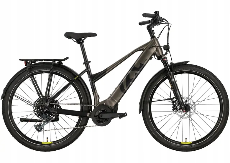Rower elektryczny trekkingowy Husqvarna Tourer T2 Bosch 45cm 27,5'' S 75Nm brązowy 91096Rower elektryczny trekkingowy HUSQVARNA Tourer T2 BOSCH 45cm 27,5'' S 75Nm ⭐ Husqvarna Tourer T2 Gent to rower elektryczny, który sprawdzi się zarówno podczas codziennych dojazdów do pracy, jak i na dłuższych wyprawach poza miasto. Solidna aluminiowa rama w eleganckim, matowym kolorze dark bronze przyciąga wzrok i podkreśla nowoczesny charakter roweru. Dzięki kołom 27,5″ oraz amortyzowanemu widelcowi SR Suntour jazda pozostaje płynna i komfortowa niezależnie od nawierzchni. ✅ Sercem roweru jest mocny silnik Bosch Performance Line o momencie 75 Nm, wspierany przez zintegrowaną baterię 625 Wh. To połączenie zapewnia dynamiczne przyspieszenia i pewność, że nawet dłuższe trasy pokonasz bez obaw o b… 7 300 złAllegroDostawa: w Polsce Złóż skargęKup!
