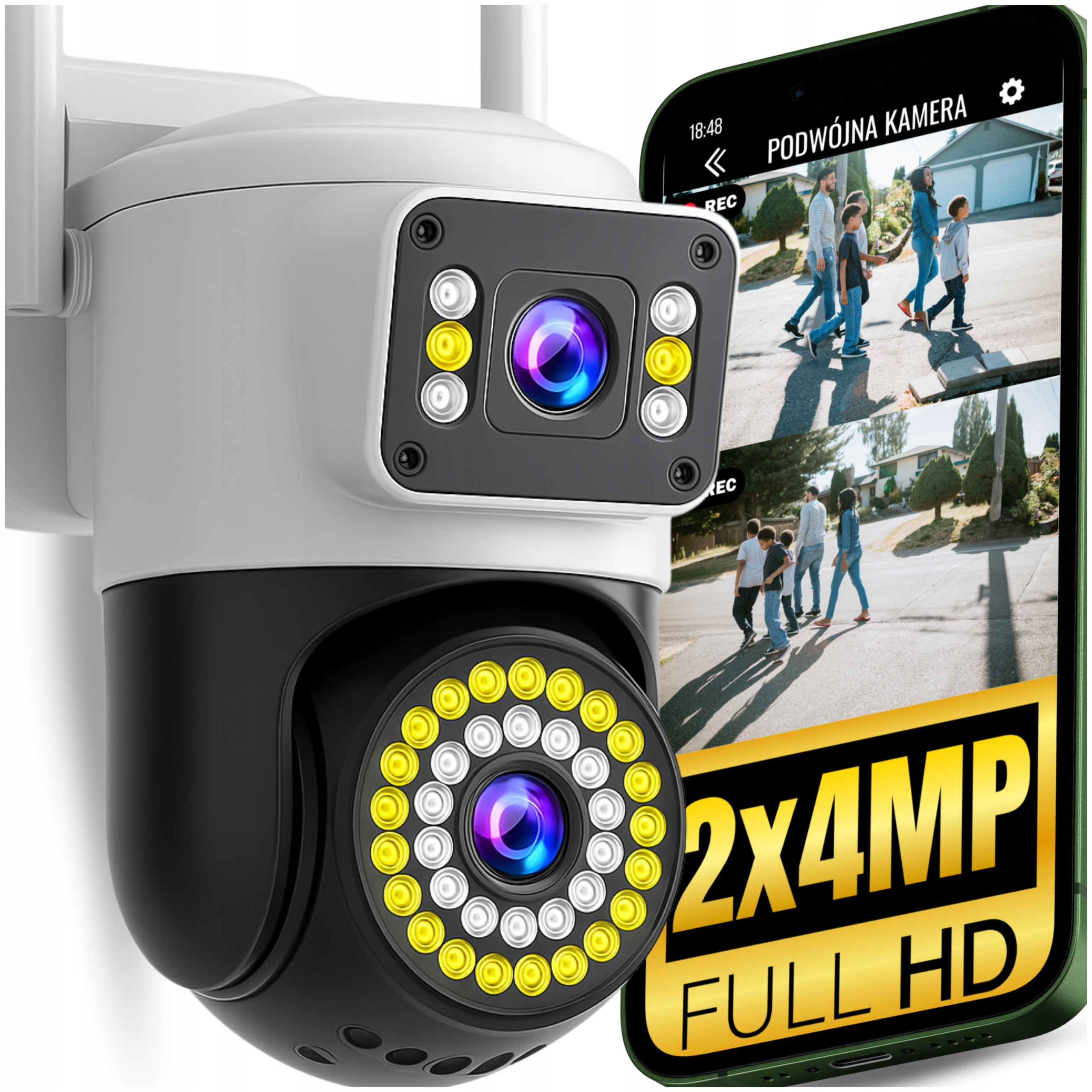 Podwójna Kamera Wifi Ip Smart Zewnętrzna Obrotowa 6MPX Aplikacja Ultra Hd 180 złAllegroDostawa: w Polsce Złóż skargęKup!