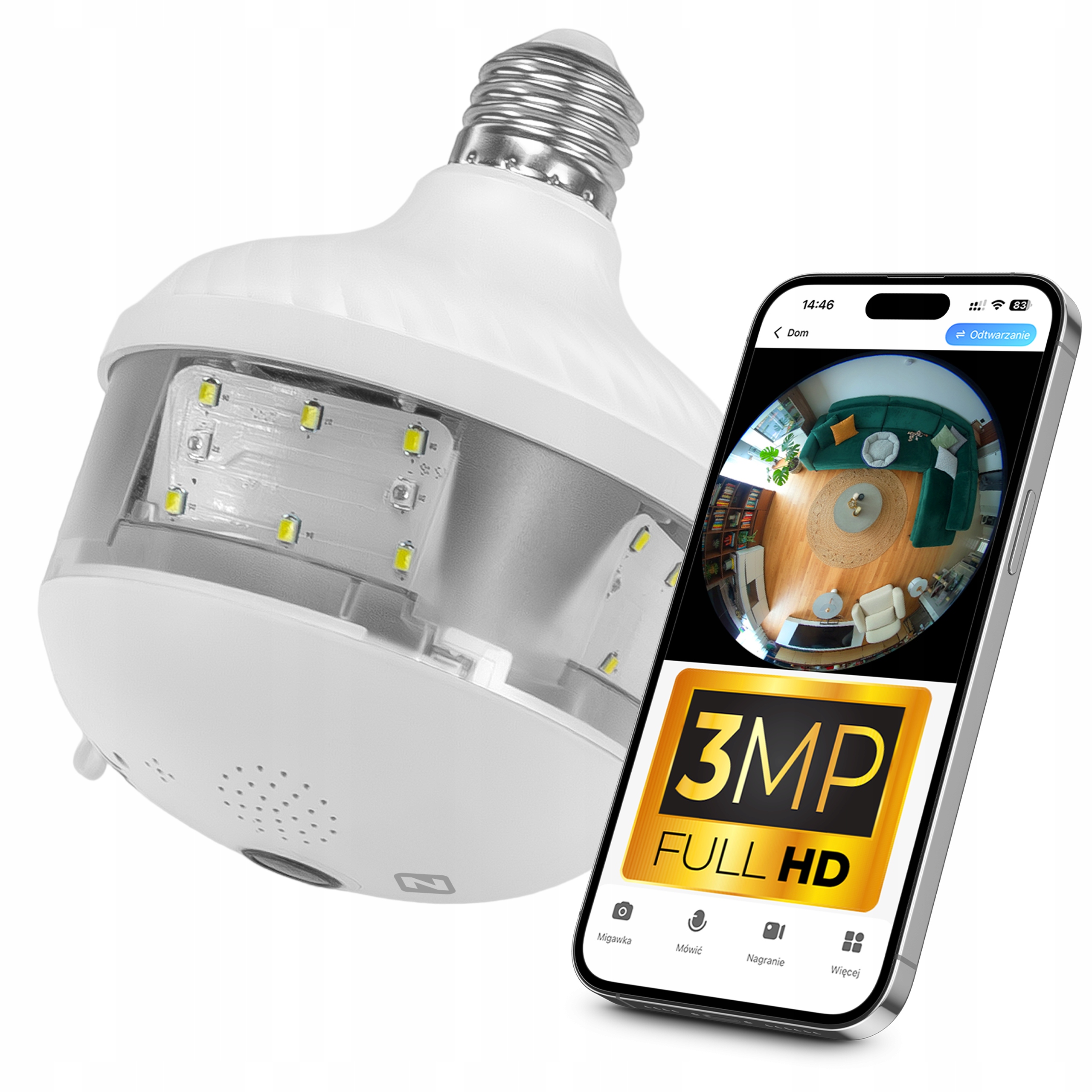 Kamera W Żarówce 360° Smart Wifi Ip Z3 3MPx Fisheye E27Kamera W Żarówce 360° Smart Wifi Ip Z3 3MPx Fisheye E27 99 złAllegroDostawa: w Polsce Złóż skargęKup!