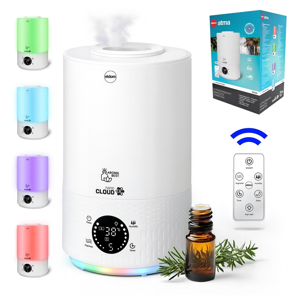 Nawilżacz Powietrza Ultradźwiękowy Jonizacja Higrometr Wyświetlac Lcd PilotUltradźwiękowy nawilżacz powietrza NU10 rollwyświetlacz LCDpanel dotykowysterowanie pilotemłatwa obsługahigrostat - szeroki zakres regulacji wilgotności: 45% - 95%2 tryby pracy: ciągły oraz automatyczny3 poziomy intensywności nawilżaniahigrometr - czujnik wilgotnościautomatyczne wyłączanie przy braku wody - AUTO OFFtimerpojemność: 3,2 lwydajność: do 350 ml/hczas pracy przy pełnym pojemniku na wodę: ~10 godzinwydajność urządzenia przewidziana dla pomieszczenia do 35m²naturalna jonizacja - powstaje na skutek rozbijania cząstek wodywszystkie zmiany ustawień potwierdzane są sygnałem dźwiękowymbateria do pilota: 2x LR1130 1,5Vmoc: 25WUltradźwiękowy 98 złErli.plZłóż skargęKup!