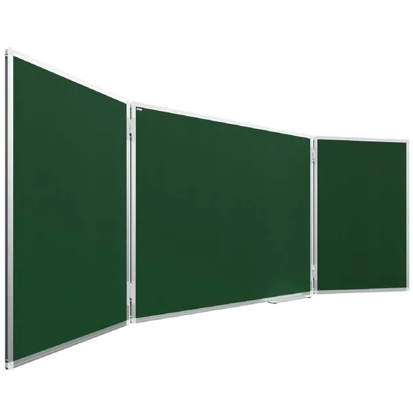 — tablica trójskrzydłowa składa się z głównej powierzchni roboczej, która znajduje się pośrodku, oraz kilku dodatkowych przylegających do boków. Tablice boczne są prawie o połowę krótsze od głównej, natomiast są zamontowane na obrotowych przegubach, co pozwala na zwarte złożenie konstrukcji. Tablice trójskrzydłowe są w większości reprezentowane przez klasyczne modele kredowe.