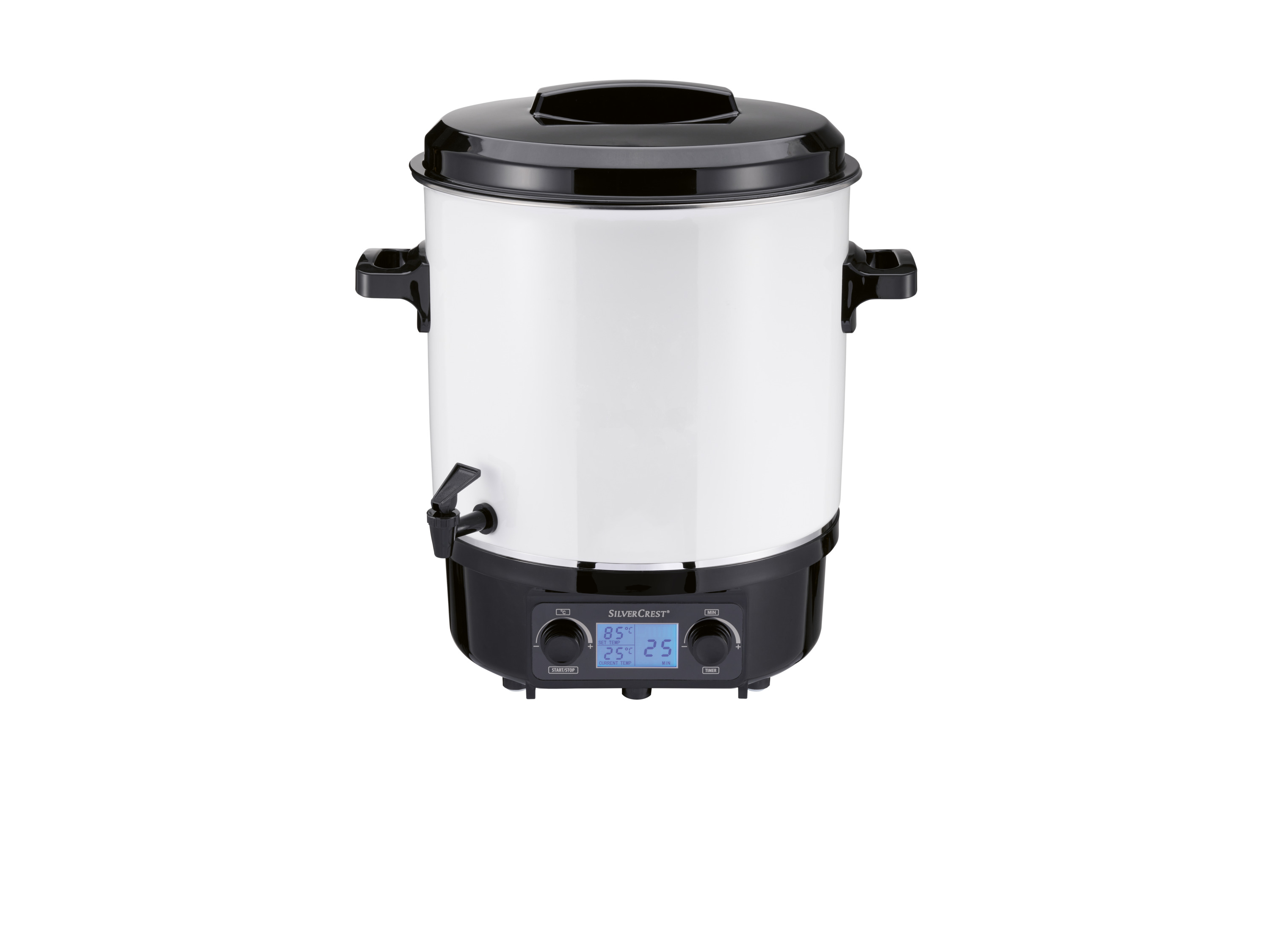 Silver Crest SILVERCREST® KITCHEN TOOLS Garnek do pasteryzacji cyfrowy, SEAD 1800 B2/SOEAD 1800 B2, 1800 Wod 349 złPorównaj ceny3→Silvercrest® Kitchen Tools Garnek do pasteryzacji cyfrowy Sead 1800 B2/Soead 1800 B2, 1800 W Opis produktu do pasteryzacji i konserwowania dżemu, owoców i warzyw również do podgrzewania i utrzymywania więcej→ciepłych napojów; gulaszu, zup i innych potraw z cyfrowym wyświetlaczem i elektronicznym sterowaniem na 14 słoików w 2 warstwach – z kratką emaliowana obudowa i uchwyty izolujące ciepło zintegrowany kurek np. do ponczu kocioł o dużej pojemności ok. 24 l funkcja timera ochrona przed przegrzaniem sygnał dźwiękowy pojawia się po osiągnięciu temperatury docelowej lub po upływie ustawionego czasu gotowania cyfrowy wyświetlacz aktualnej i ustawionej temperatury oraz pozostałego czasu zwijanie kabla i anty…