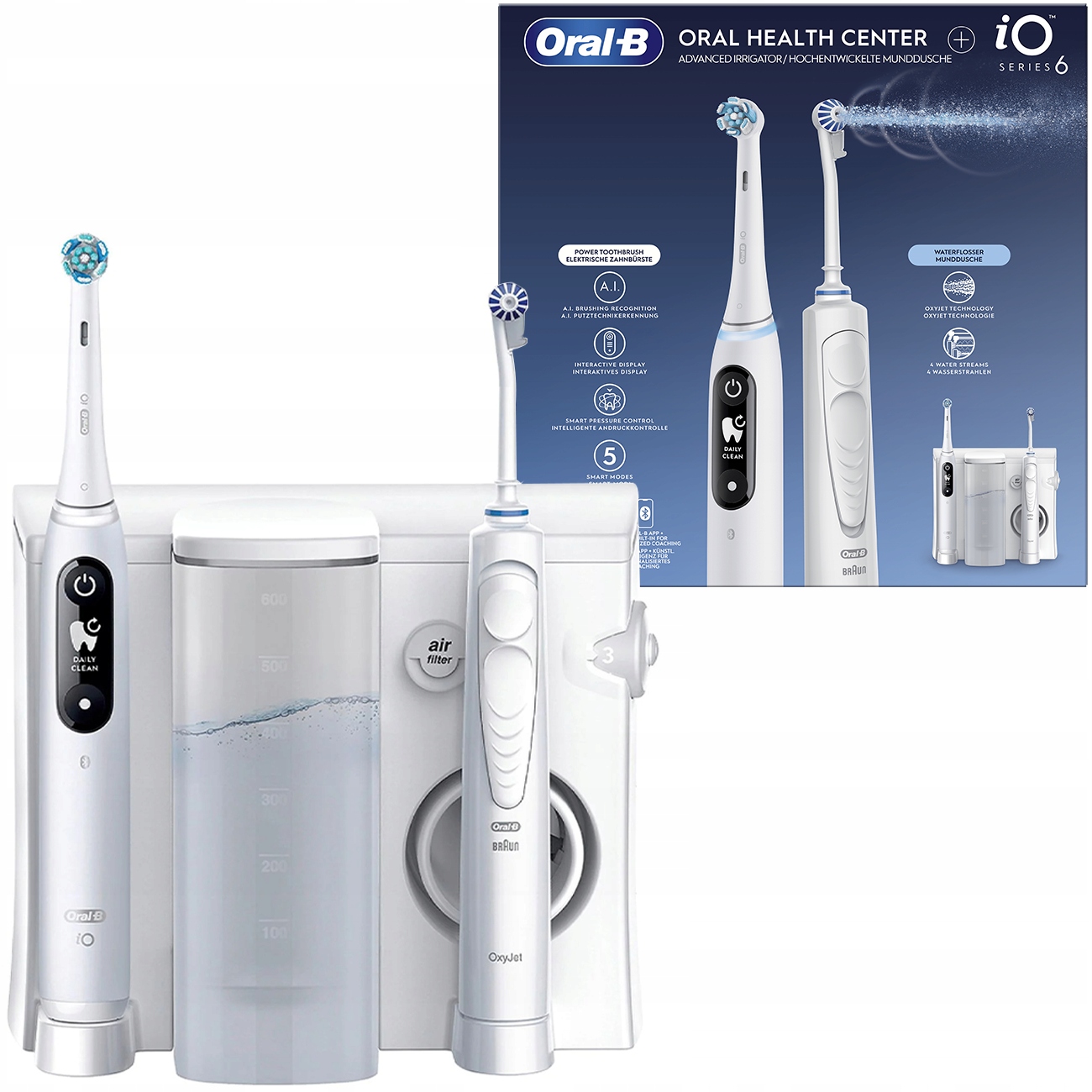Oral-B Zestaw Do Higieny Jamy Ustnej Irygator Center Oxyjet Szczoteczka IO6Irygator Oral-B Center OxyJet Irygator OxyJet Oral-B pozwoli Ci masować i czyścić dziąsła, tak aby zachować ich zdrowie. Dzięki irygatorowi możesz cieszyć się spersonalizowanym czyszczeniem dzięki regulowanemu sterowaniu ciśnieniem wody i funkcjom dysz. Można go stosować z płynem do płukania ust lub bez niego, co stanowi doskonały dodatek do codziennego mycia zębów. Technologia mikropęcherzyków Irygator jamy ustnej Oral-B Oxyjet wykorzystuje technologię mikropęcherzyków do zwalczania bakterii. Delikatne oczyszczanie dla zdrowych dziąseł Irygator jamy ustnej Oral-B Oxyjet ma obracający się strumień, który wzbogaca wodę w mikropęcherzyki powietrza z oczyszczonego powietrza, poprawi>>>>>>…Cena od 949 złPorównaj ceny i kup Oral-B Zestaw Do Higieny Jamy Ustnej Irygator Center Oxyjet Szczoteczka IO6 Allegro (Polska) →949 złEmpik_Seller (Polska) →990 złEmpik.com (Polska) →1 022 złPorównaj ceny3→