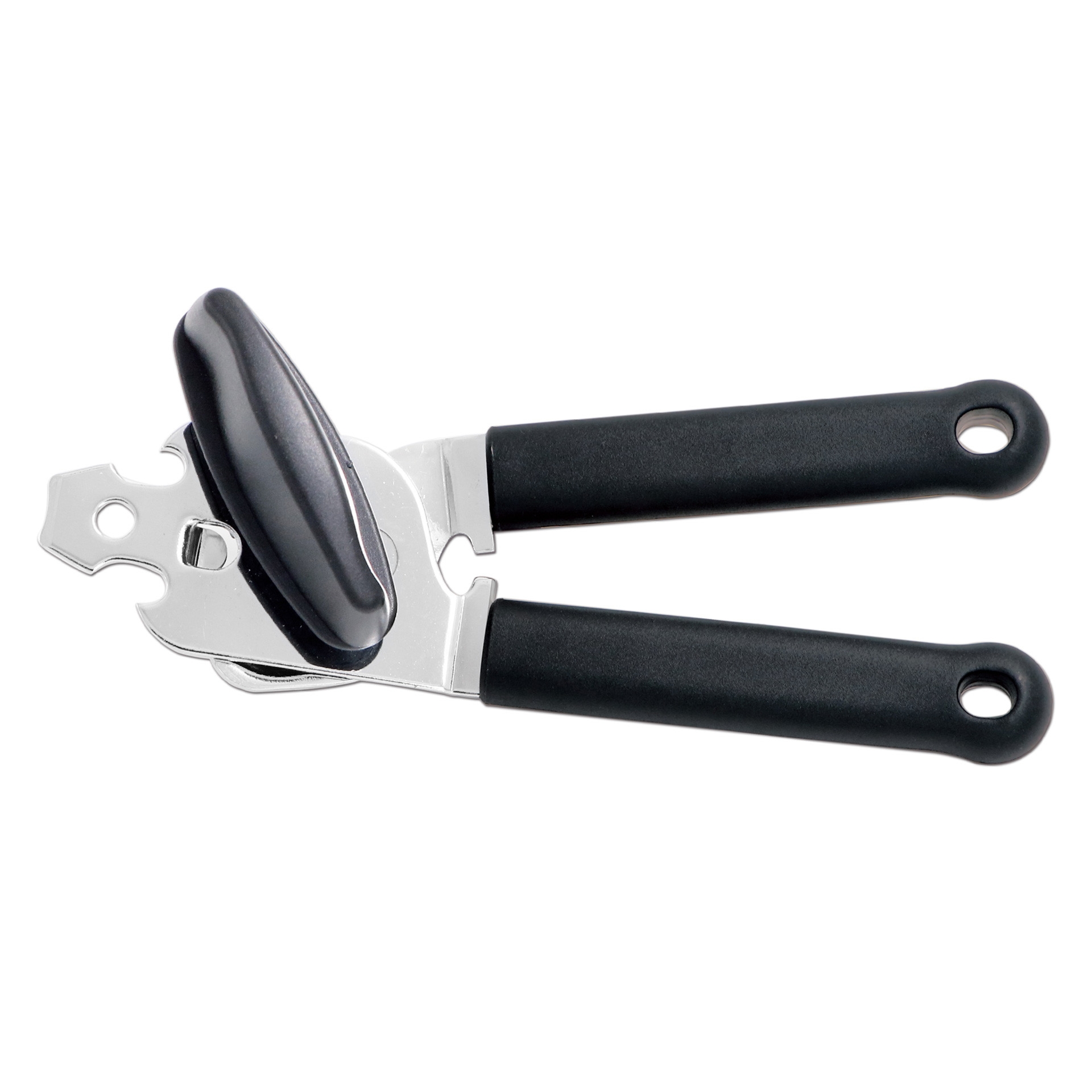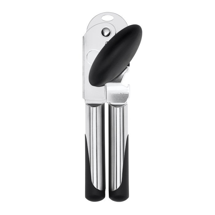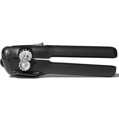 — narzędzie do otwierania puszek. Klasyczny otwieracz wygląda jak para uchwytów z nożem i pokrętłem. Konstrukcja ta jest mocowana w specjalny sposób do puszki, gdy uchwyty są wciśnięte, ostrze przebija się przez metal, a obracając pokrętłem puszka obraca się pod narzędziem, a otwieracz przecina wieczko na obwodzie. Otwieranie puszek w ten sposób jest łatwiejsze i szybsze niż przy użyciu zwykłego noża do puszek.
