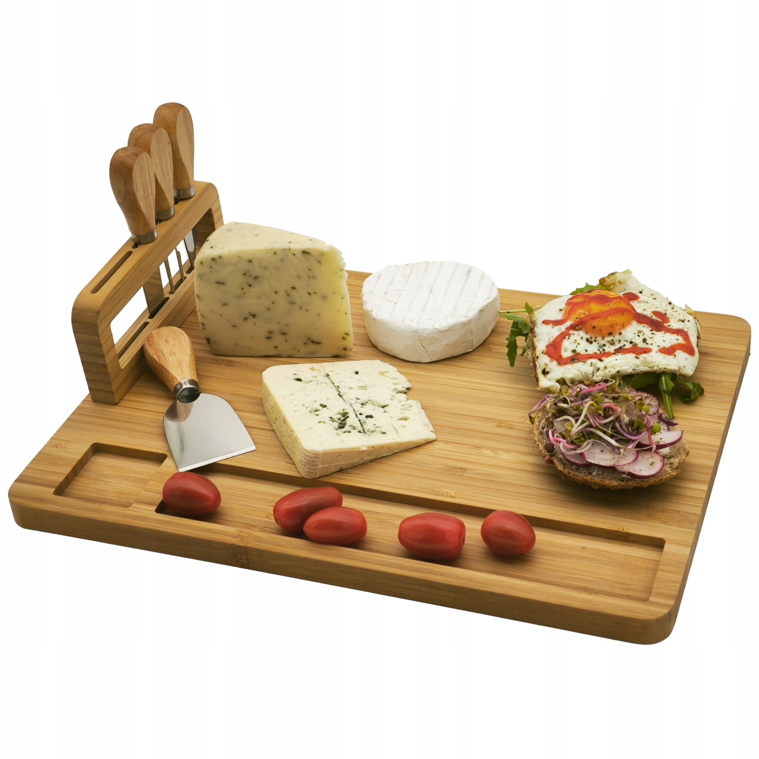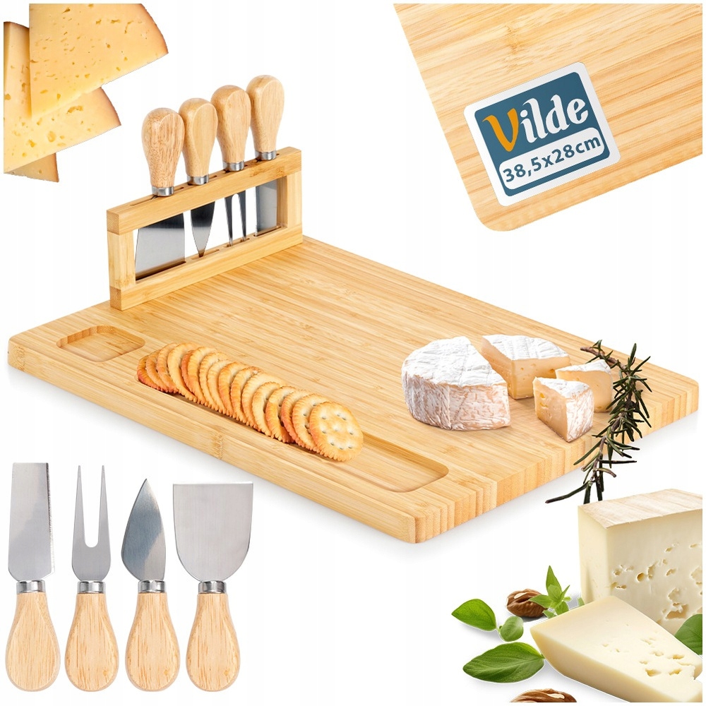 — deskę dodatkowo uzupełnia nóż kuchenny. Nóż najczęściej uniwersalny, z ostrzem średniej długości. Ale jeśli deska ma kompaktowe rozmiary, to wraz z nią nóż otrzymuje małe kompaktowe ostrze.Razem z nożem można dostarczyć inne akcesoria: tarkę, temperówkę, widelec kucharski itp. Dostępne są profesjonalne zestawy składające się z 3-4 desek i takiej samej liczby noży. W takim przypadku noże mogą mieć ostrze o różnej długości. Często zestawy te są dostarczane z etui ze specjalnymi uchwytami do bezpiecznego przechowywania.