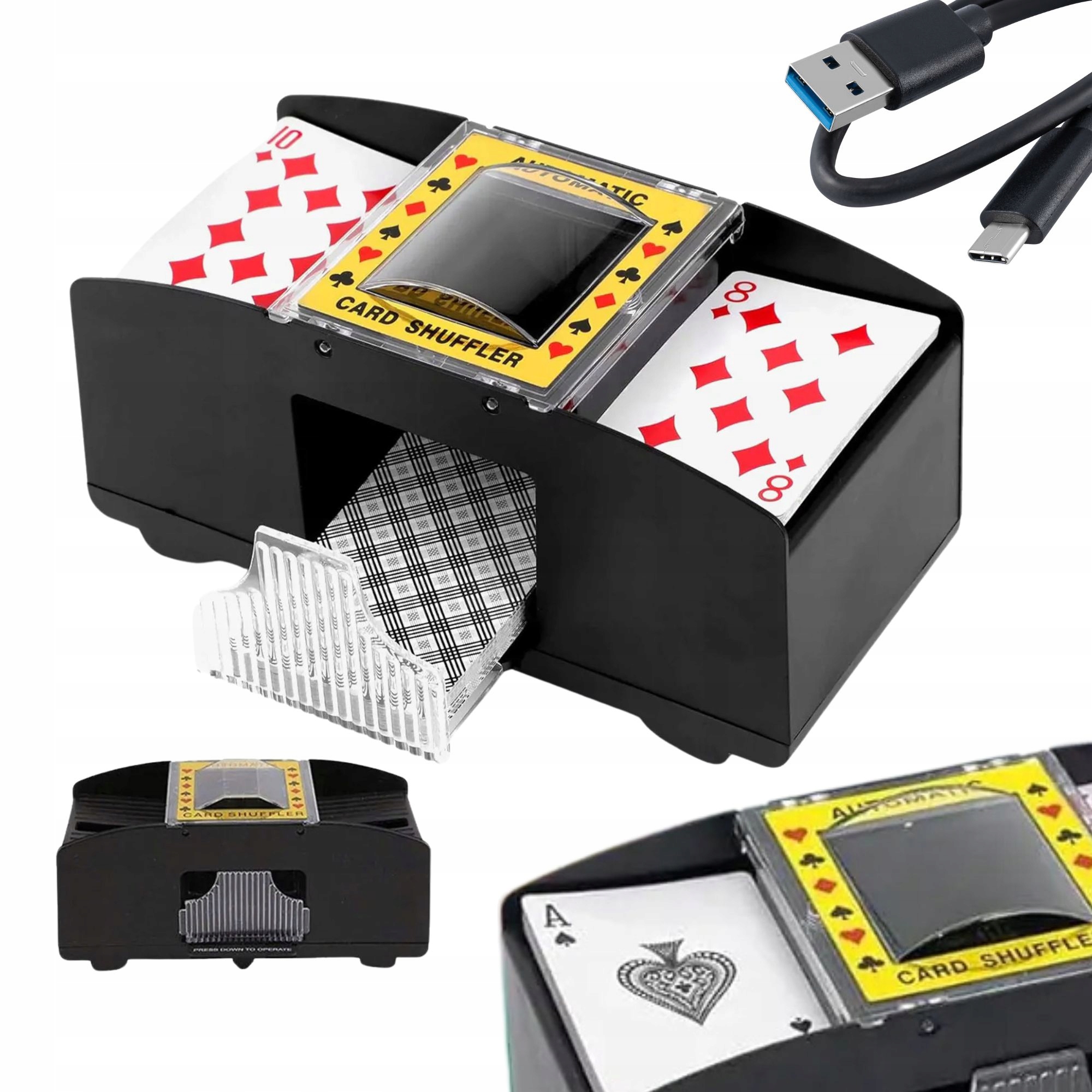 — zestawy do gry w pokera. Istnieje wiele odmian takiego pokera, jednak do gry używa się z reguły talii 54 karty (4 kolory od dwójki do asa plus dwa jokery), a sam proces gry przewiduje zakłady, warunkowe lub rzeczywiste. Dlatego zestaw do pokera, oprócz talii, zawiera żetony na zakłady - różne kolory i odpowiednio nominały; liczba żetonów może być różna, najczęściej 100 lub 200 (czasem więcej), plus żeton serwisowy krupiera „Dealer”.W tej kategorii powstają zarówno stosunkowo niedrogie zestawy w prostym opakowaniu, jak i bogato zaprojektowane zestawy w metalowych lub skórzanych etui, które nadają się nawet do roli akcesorium wizerunkowego (np. w aranżacji biura). Również zestaw może zawierać oryginalne dodatki - na przykład okulary do gry w "pijanego pokera".