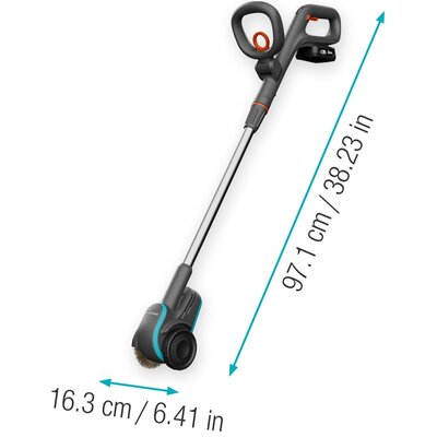 GARDENA Szczotka akumulatorowa 14820-55Lekka, wszechstronna i łatwa w użyciu akumulatorowa szczotka do fug Gardena EasyWeed 1800/18V P4A 14820-55 to najlepsze narzędzie do czyszczenia podłóg zewnętrznych z trawy, mchu i pleśni. Należy do produktów zasilanych baterią 18V. Szczotka wykonana jest z ultrawytrzymałych drutów stalowych, umieszczonych na prawym wałku.Cena od 470 złPorównaj ceny i kup GARDENA Szczotka akumulatorowa 14820-55 Mediaexpert.pl →470 złMorele.net (Polska) →502 złProshop.pl →529 złGardena.com (Polska) →597 złPorównaj ceny4→