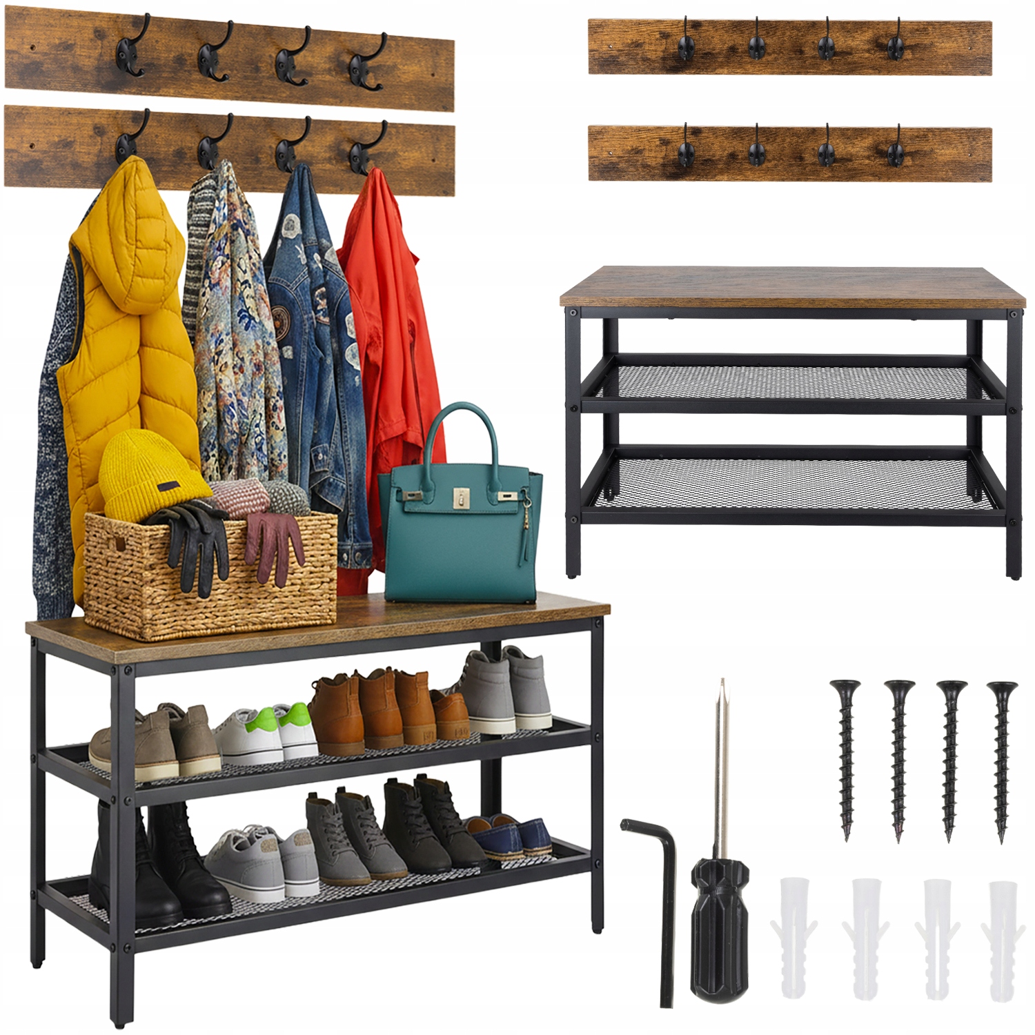 Szafka Regał na Buty z Wieszakami Ruhhy Ławka Brązowa Loft Industrial150Kup!złAllegroDostawa: w Polsce Złóż skargęSzafka Regał na Buty z Wieszakami Ruhhy Ławka Brązowa Loft Industrial
