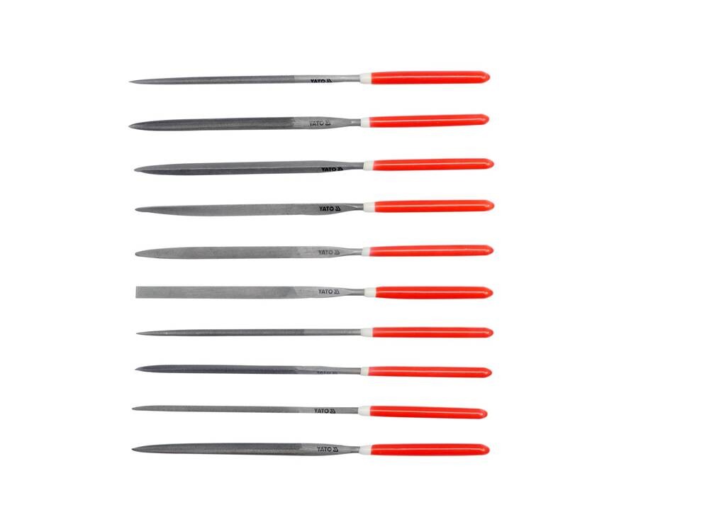 - 12 x 100 m pilnik iglak: płaski, płaski zwężany, okrągły, półokrągły, owalny, kwadratowy, trójkątny, nożowy, barette, krzyżowy, z zaokrąglonymi krawędziami i mieczowy