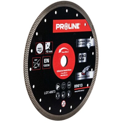 PROLINE do cięcia 89613 230 mmod 141 złPorównaj ceny5→Tarcza diamentowa przeznaczona do wykonywania precyzyjnych cięć o gładkim wykończeniu krawędzi. Specjalna konstrukcja tarczy oraz wieńca diamentowego gwarantuje najwyższą jakość i skuteczność cięcia, więcej→zwiększoną wydajność pracy, przyspiesza chłodzenie i minimalizuje ryzyko powstawania odprysków. Idealna tarcza do cięcia twardych płytek ceramicznych oraz płytek z kamienia naturalnego: glazura, gres, marmur, granit itp. Zaprojektowana do pracy na sucho i mokro. Wykonanie: najwyższej jakości diament techniczny, prasowany na gorąco.