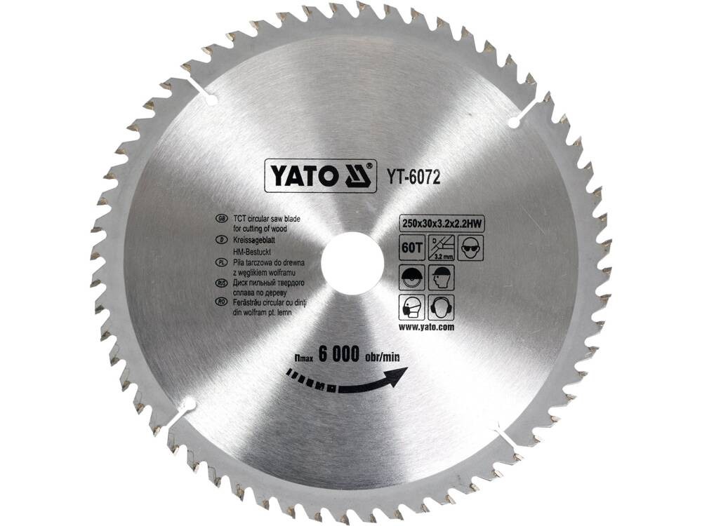 Yato widiowa do drewna 250x60tx30mm 0.9kg YT-6072od 39 złPorównaj ceny5→Tarcza widiowa przeznaczona do poprzecznego, wzdłużnego i kątowego cięcia do cięcia drewna, płyt drewnopochodnych, tworzyw sztucznych. zapewnia szybkie i precyzyjne cięcie zęby z nakładką z węglika wolframu
