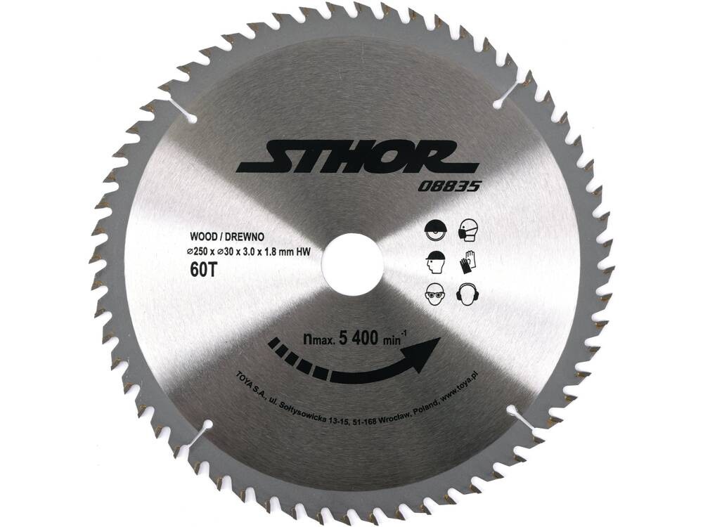 Sthor Piła tarczowa z węglikiem 250x60x30 08835 0.8kg 08835od 29 złPorównaj ceny5→Tarcza z nakładką widiową, wlutowaną mosiądzem. Przeznaczona do poprzecznego i kątowego cięcia drewna twardego materiałów drewnopochodnych niektórych twardych tworzyw sztucznych /zalecane cięcie próbn więcej→e/ Dodatkowe informacje: kąt natarcia dodatni ok. 10 stopni uzębienie naprzemianskośne typ BA rzaz ok. 4.0 mm